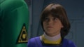 The Blue Senturion time travels to present-day Angel Grove with a message from the future for Dimitria.
