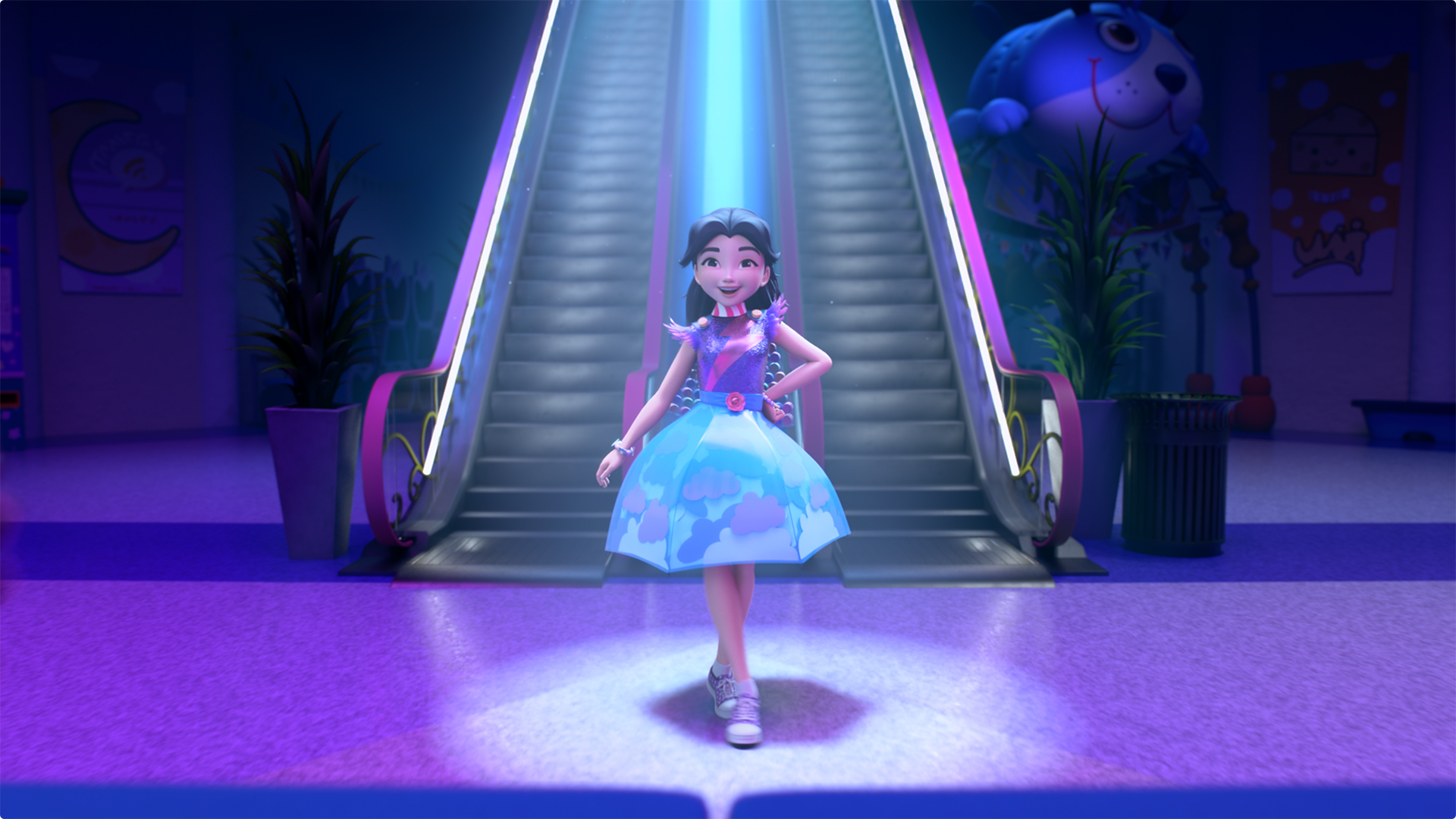 The girls get snowed in and trapped in a shopping mall, and Emma is unable to go home to design her dress for an important job interview.