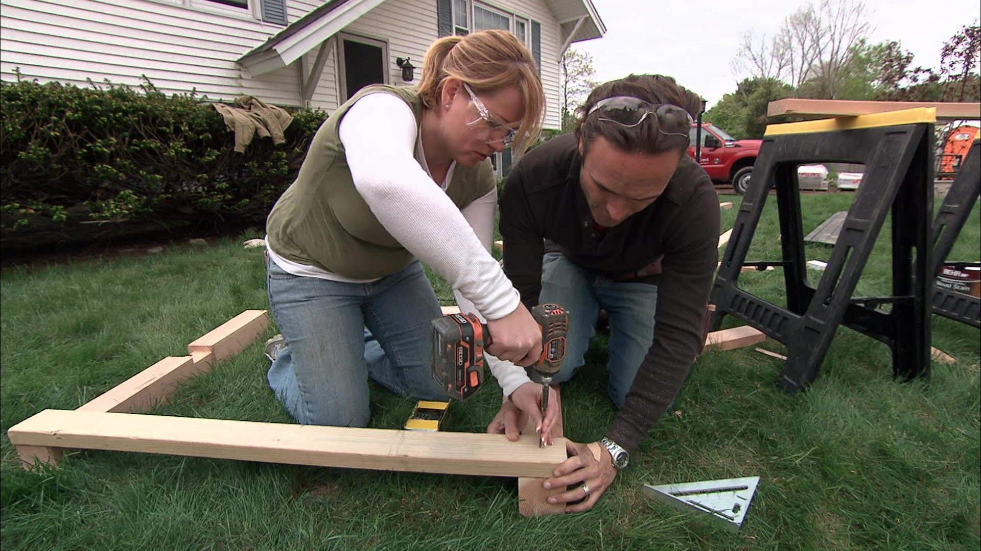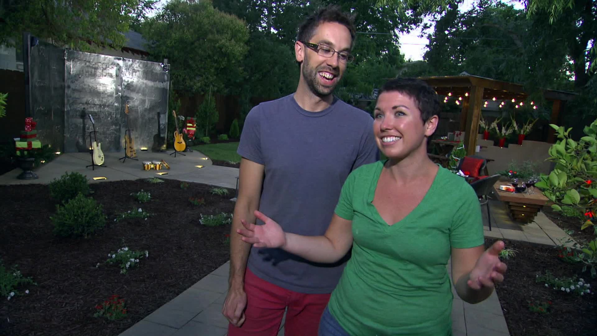 Landscaping pros surprise home improvement shoppers by redoing their yard.
