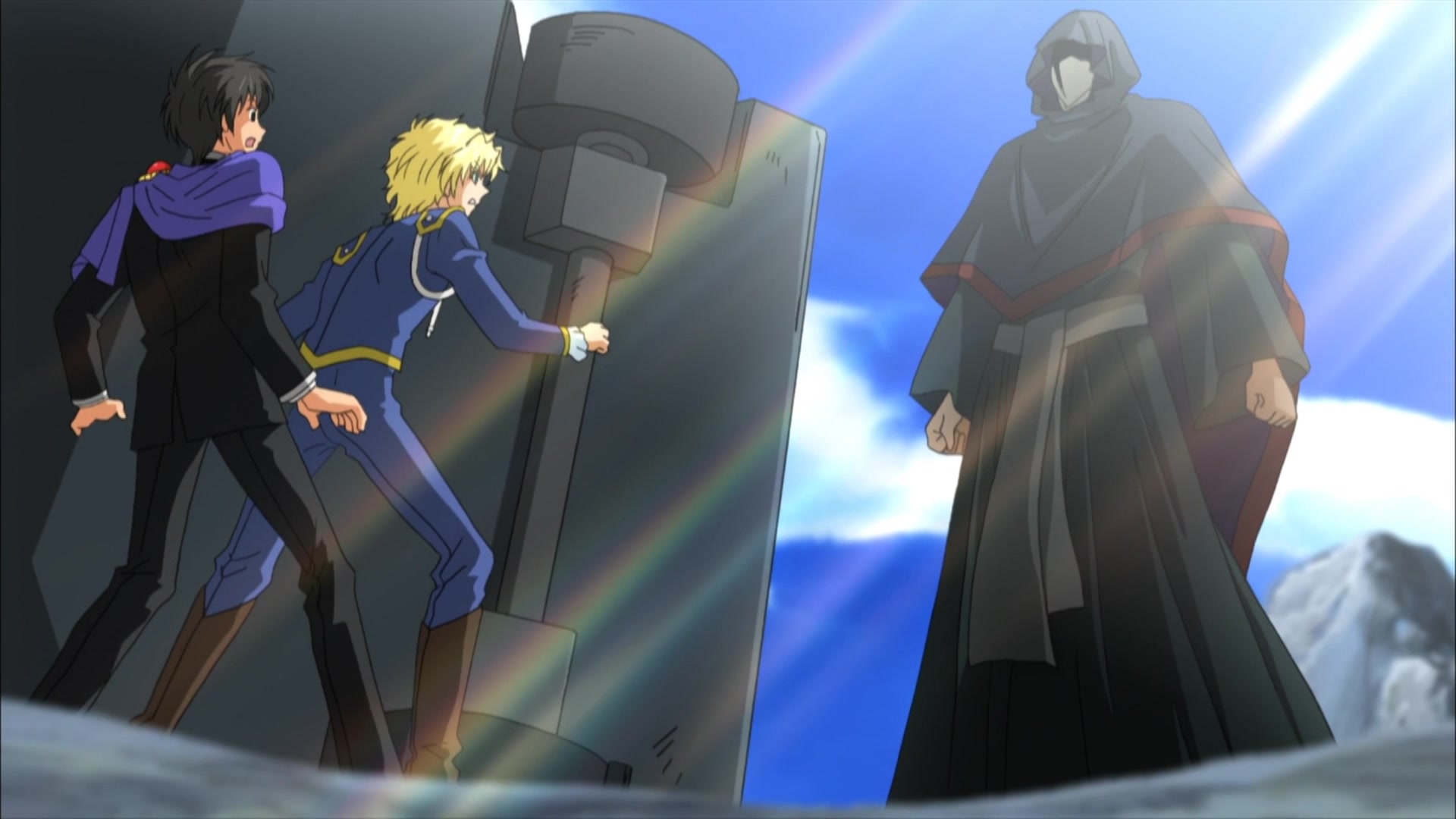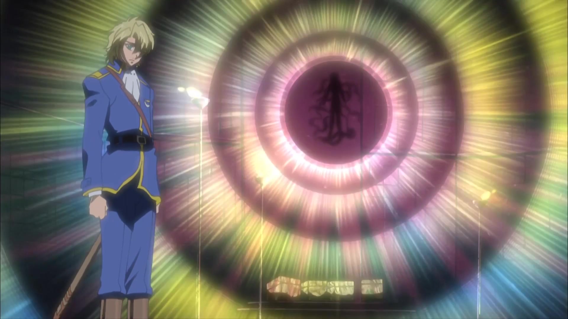 As the sealing ceremony begins, Yuri loses his focus when Wolfram attacks while a shadow appears, grabbing the keys to the boxes and opening them. From within appears the Great One himself, but Murata and Josak spring into action to stop him from opening