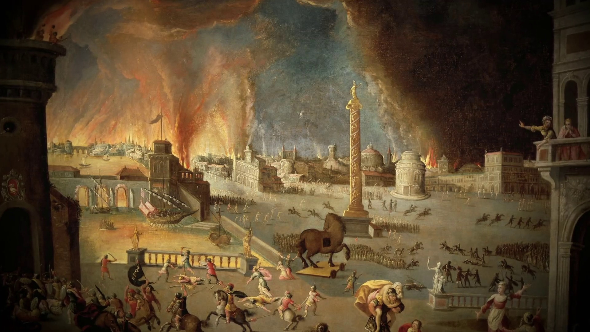 The Trojans are surprised to discover that the Greeks have suddenly left the shores of Troy, leaving only a wooden horse. Inside the horse, Greek warriors remain silent and still.