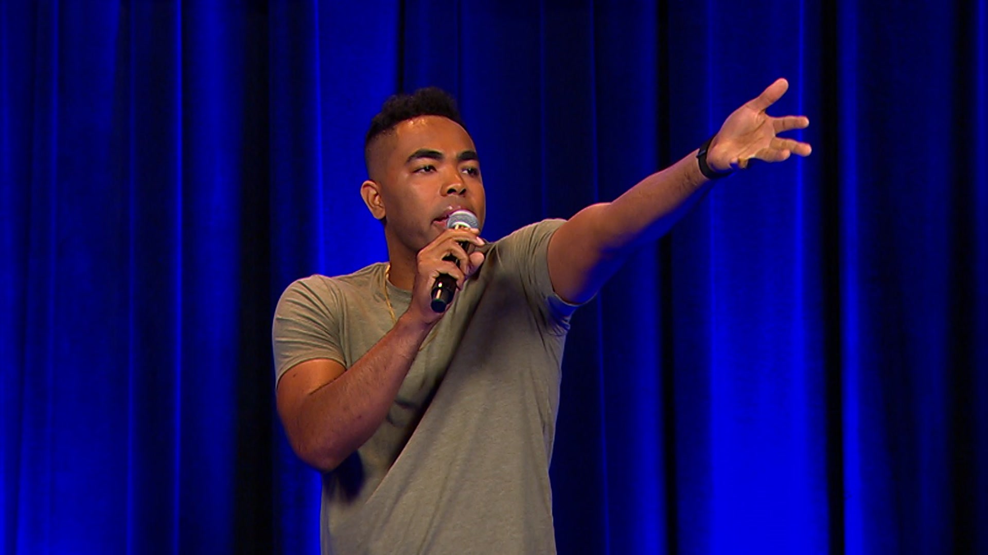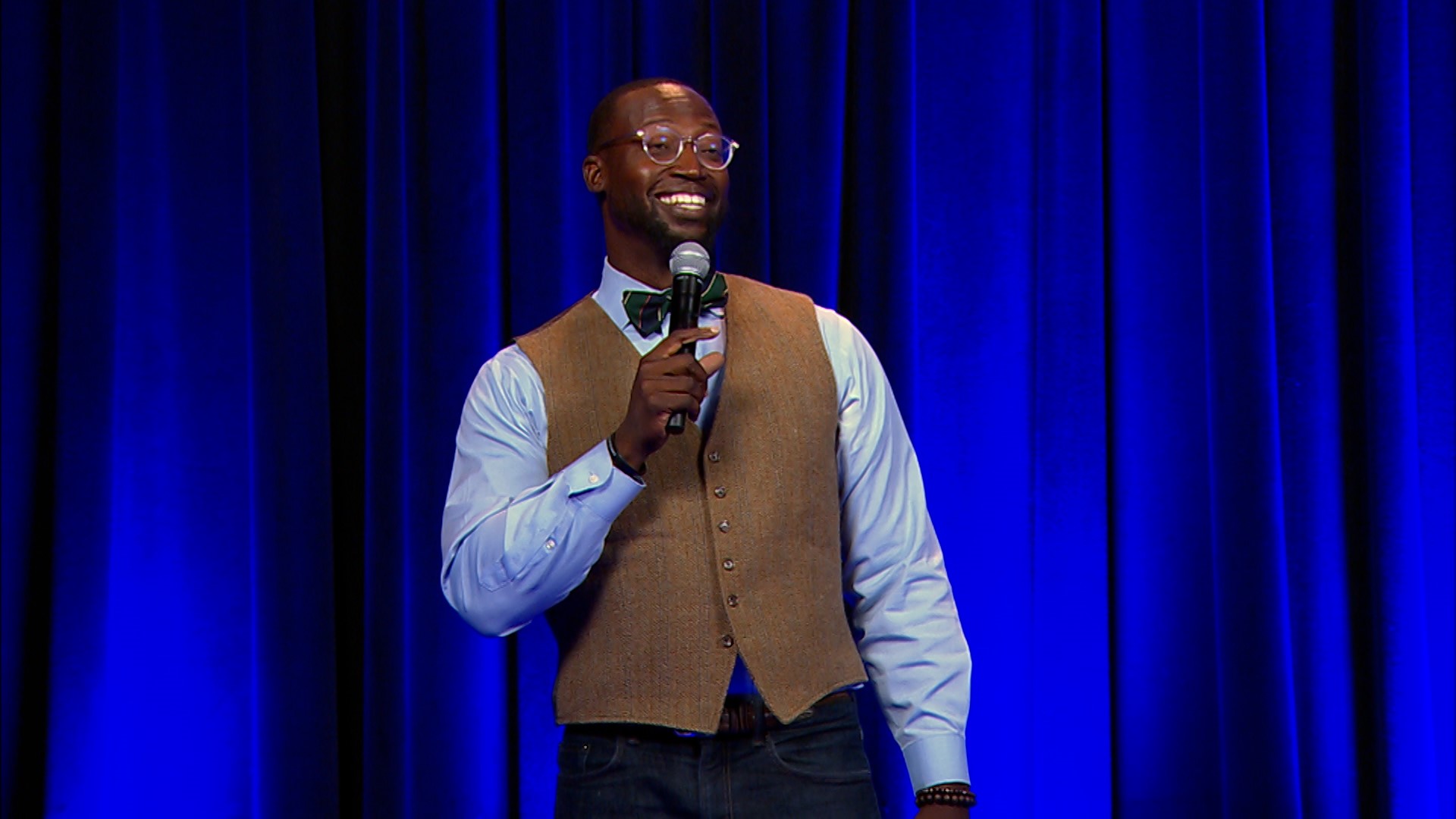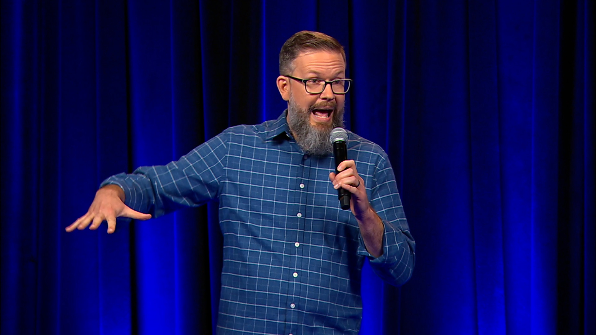 Aspiring comics from rural America join a popular comedic host to showcase their abilities in front of an audience.