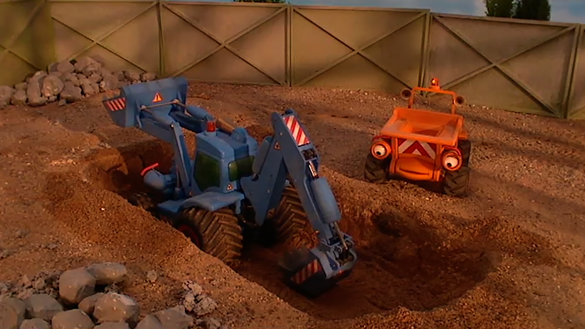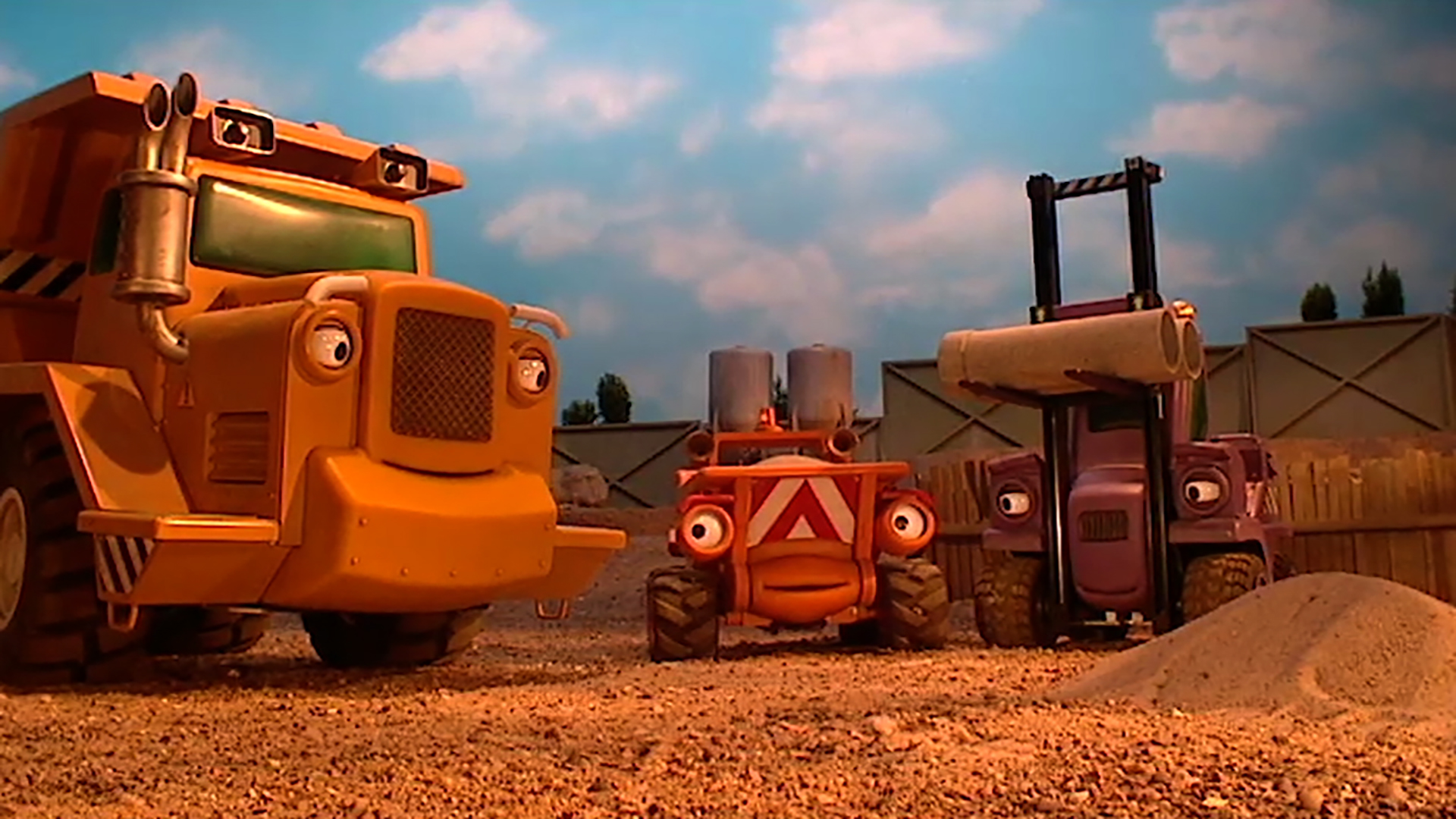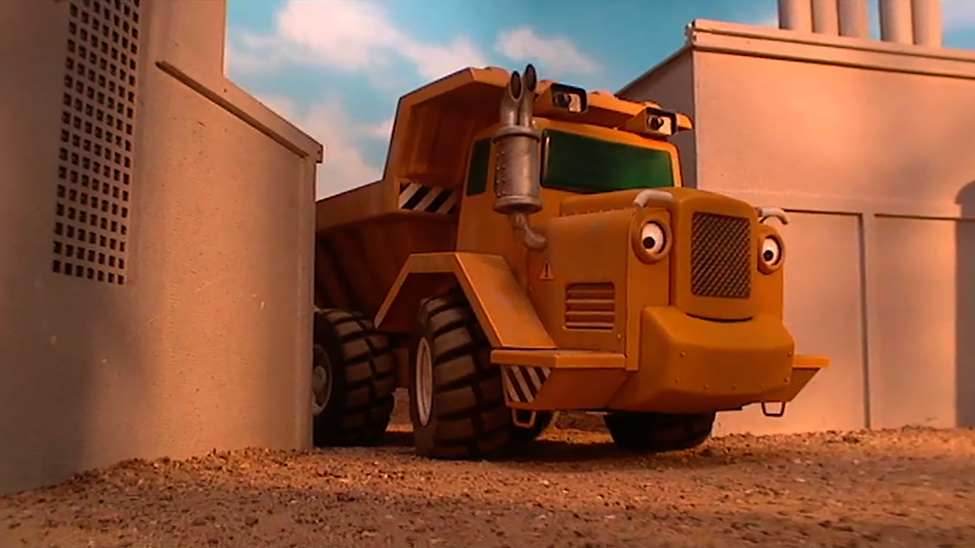 When Lug tells Scooch that grading a road on your own is what every dumper dreams of, the little truck decides to do a bit of solo grading himself.