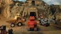 The trucks are working in the snowy mountains where safety is the number one priority and safety gear is de rigour.