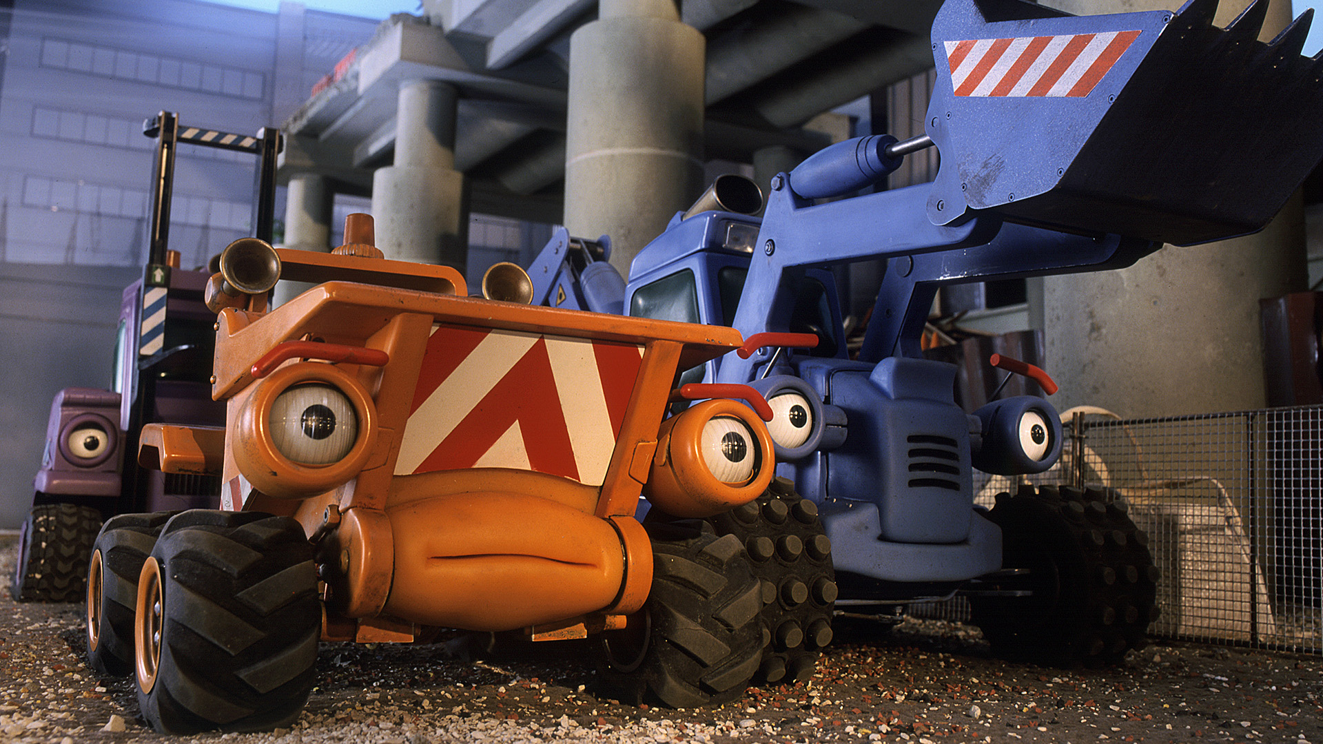 The machines are shocked to find that during the night the new multi storey car park they were building has been destroyed.