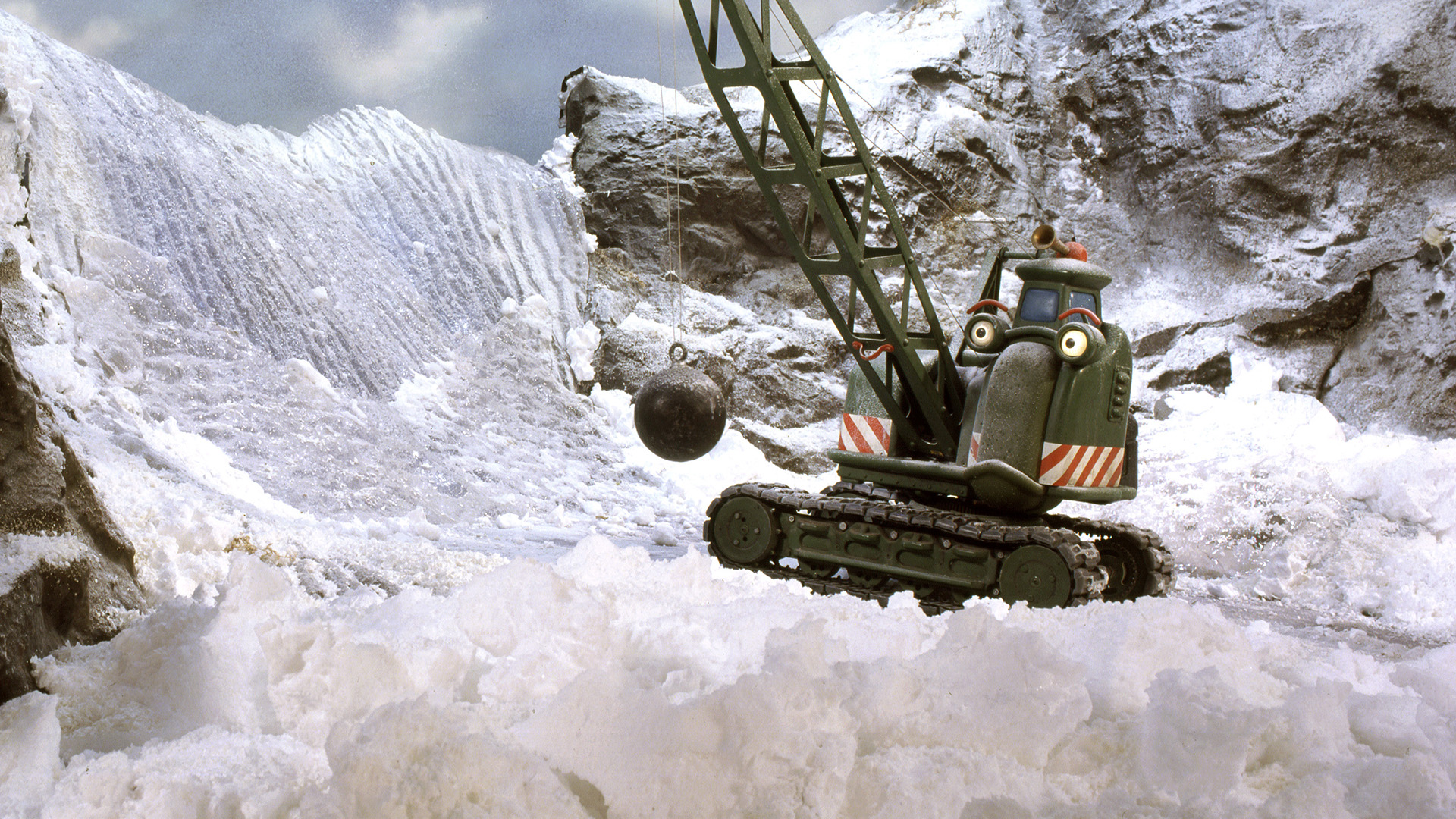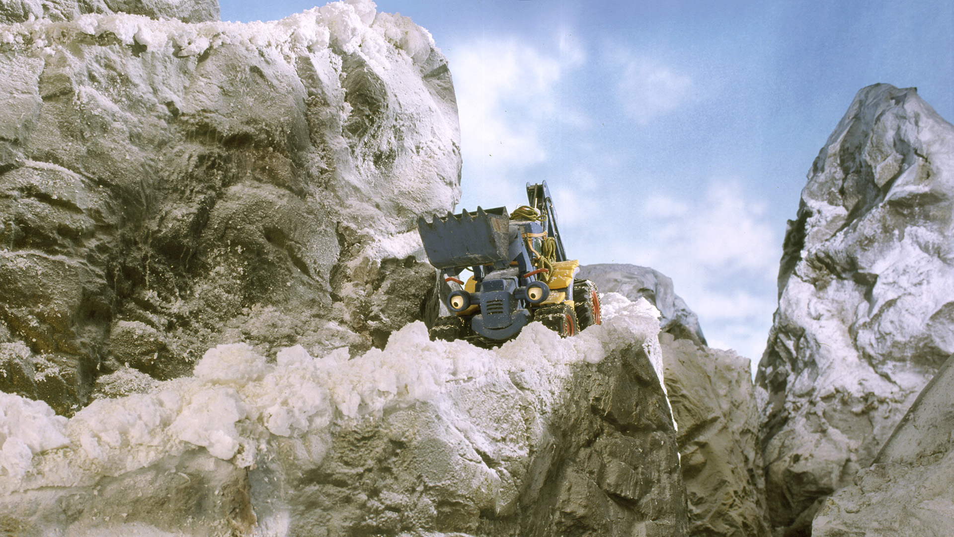 Due to a wall of ice that Carl can't even shift, the machines are stuck on a slippery mountain road.
