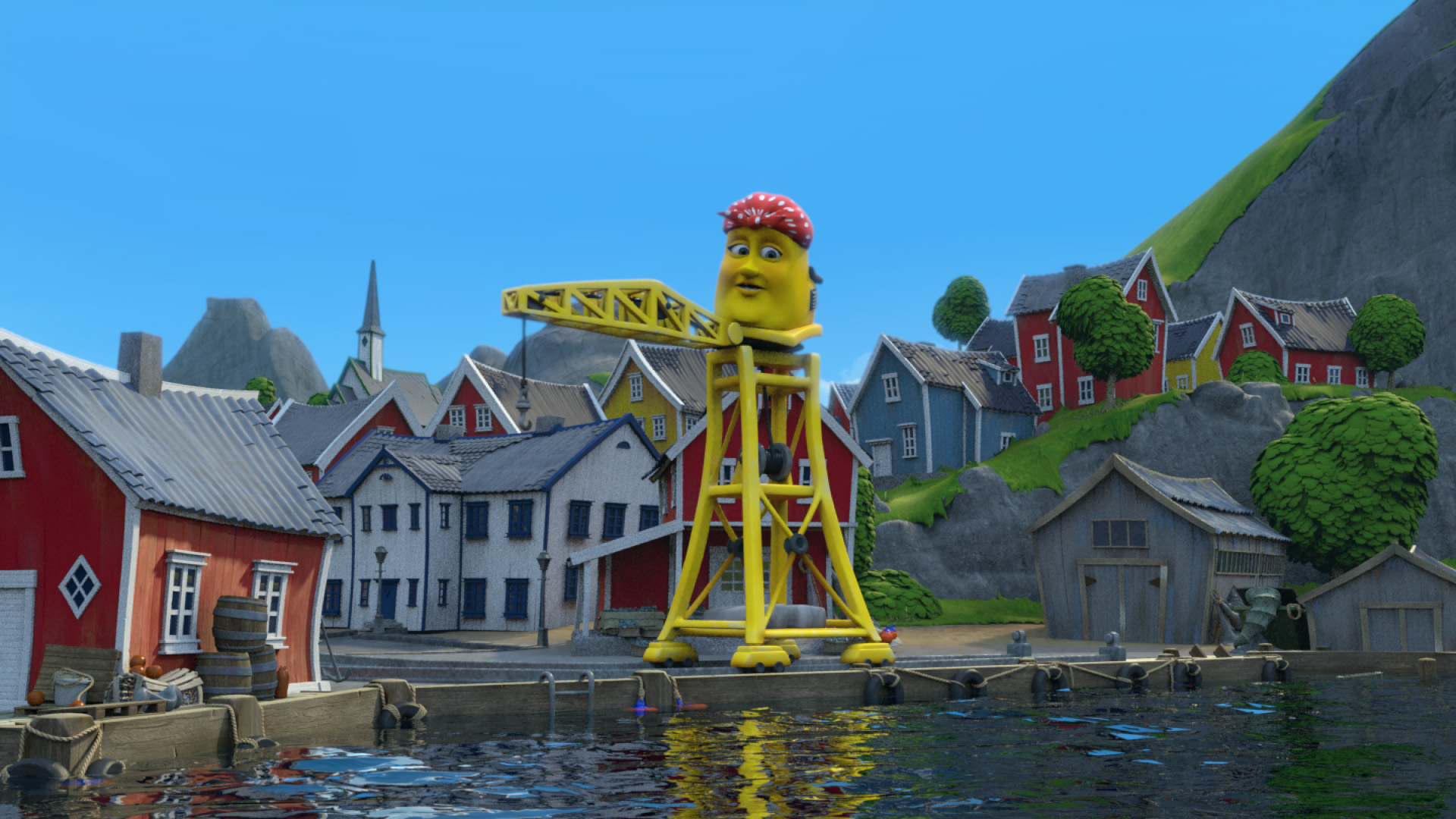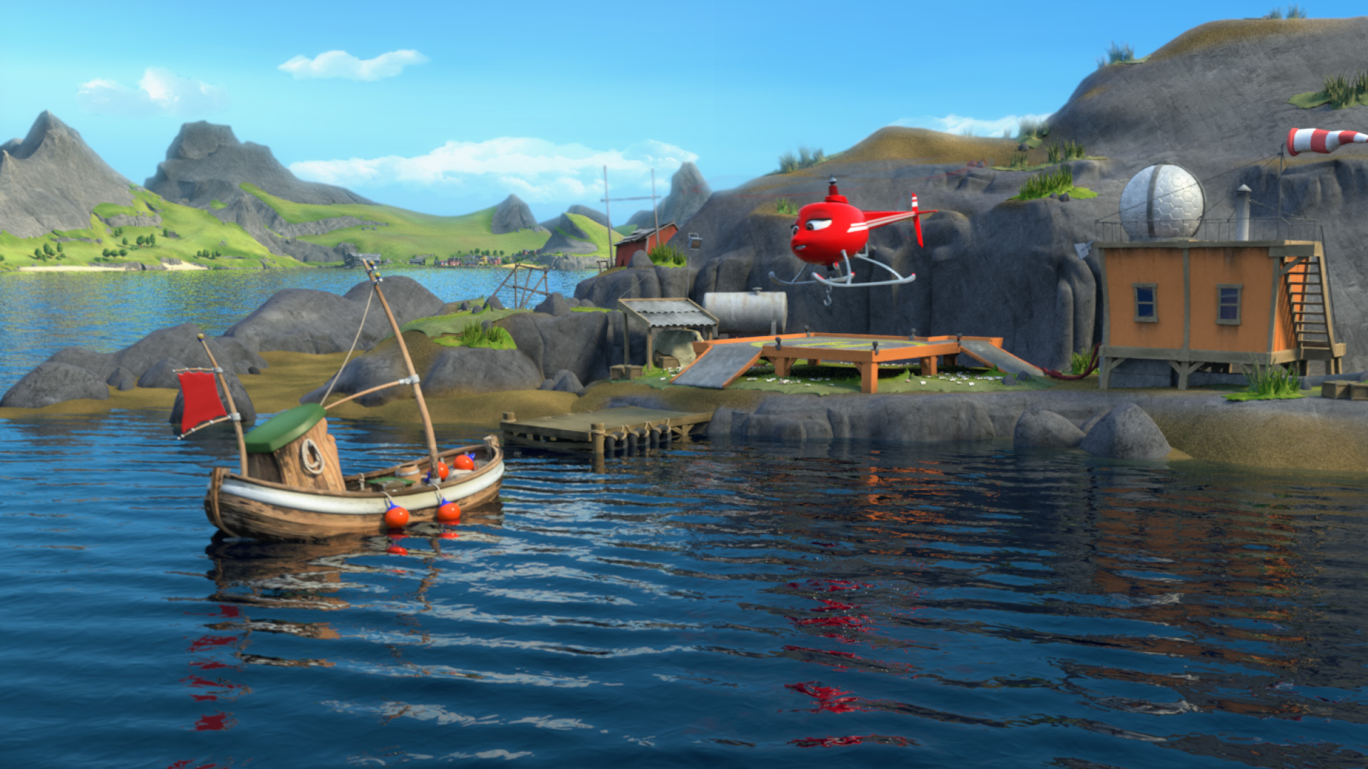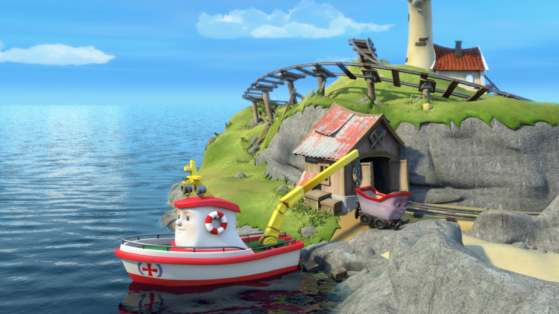 Crane wishes that she wasn't so stationary; she'd like a holiday. Rocky has had his engine souped up at a distant ship-yard.