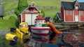 Trawler sets off on a fishing trip in spite of an approaching storm. Swifty refuses to be sensible and charge up before setting off.