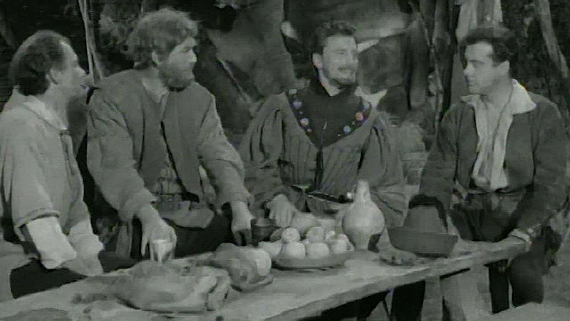 Forewarned that Robin Hood and Maid Marian will visit Nottingham Fair to buy new supplies of Lincoln Green cloth, the Sheriff stations his men-at-arms in the town square.