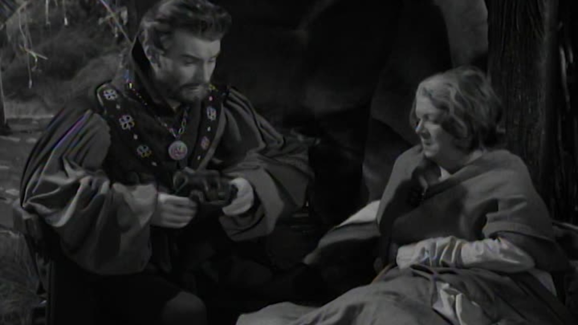 Edwin, Marian's cousin, is scornful of her claims about Robin's allegiance to King Richard. To confirm her knowledge, Marian takes him to the outlaw camp, where Edwin's presence proves dangerous.