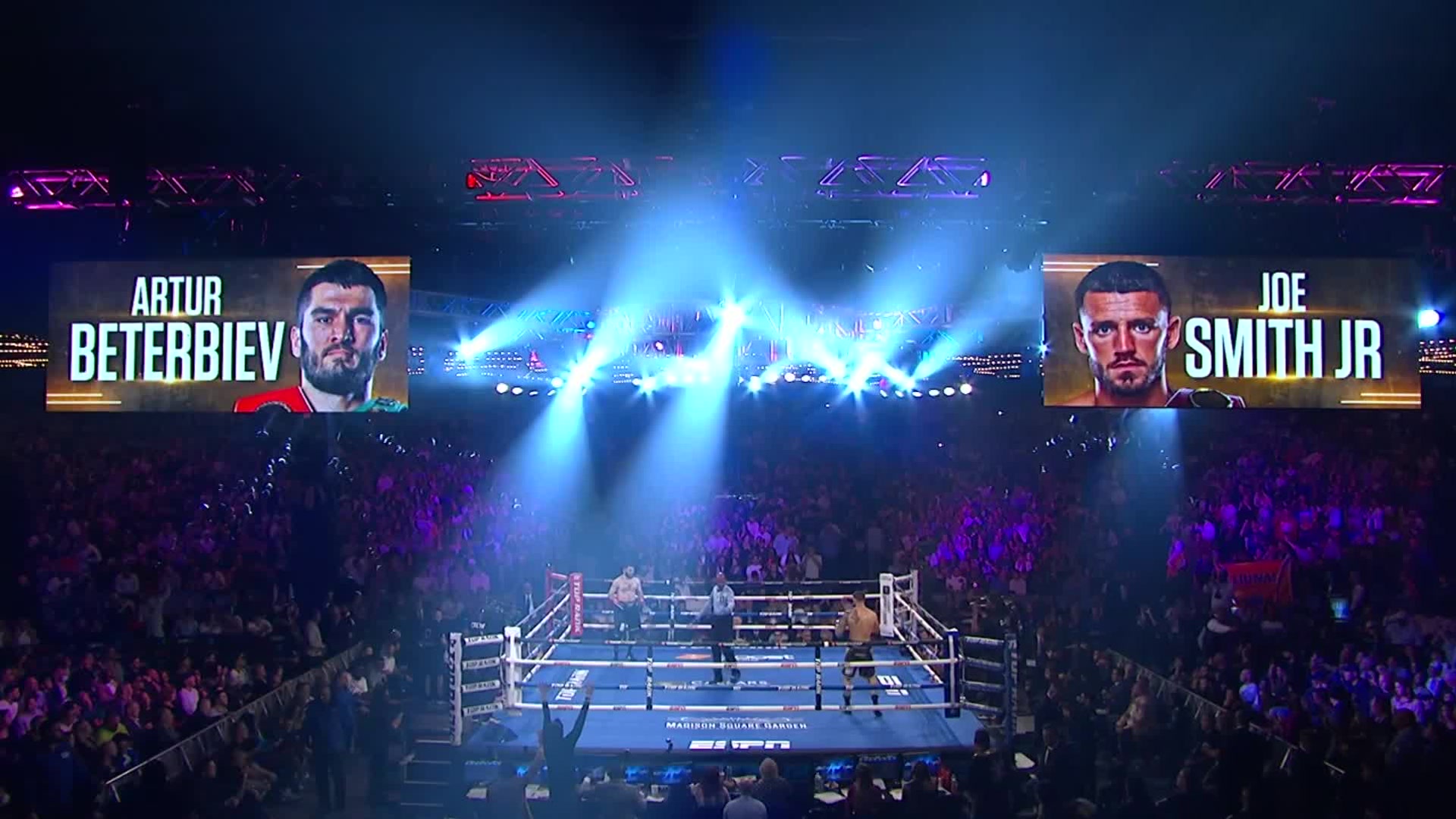 On June 18th, 2022 Artur Beterbiev and Joe Smith Jr faced eachother in a battle for IBF, WBC and WBO World Light Heavyweight title at Madison Square Garden that ended by technical knockout in the second round securing the win for Beterbiev.
