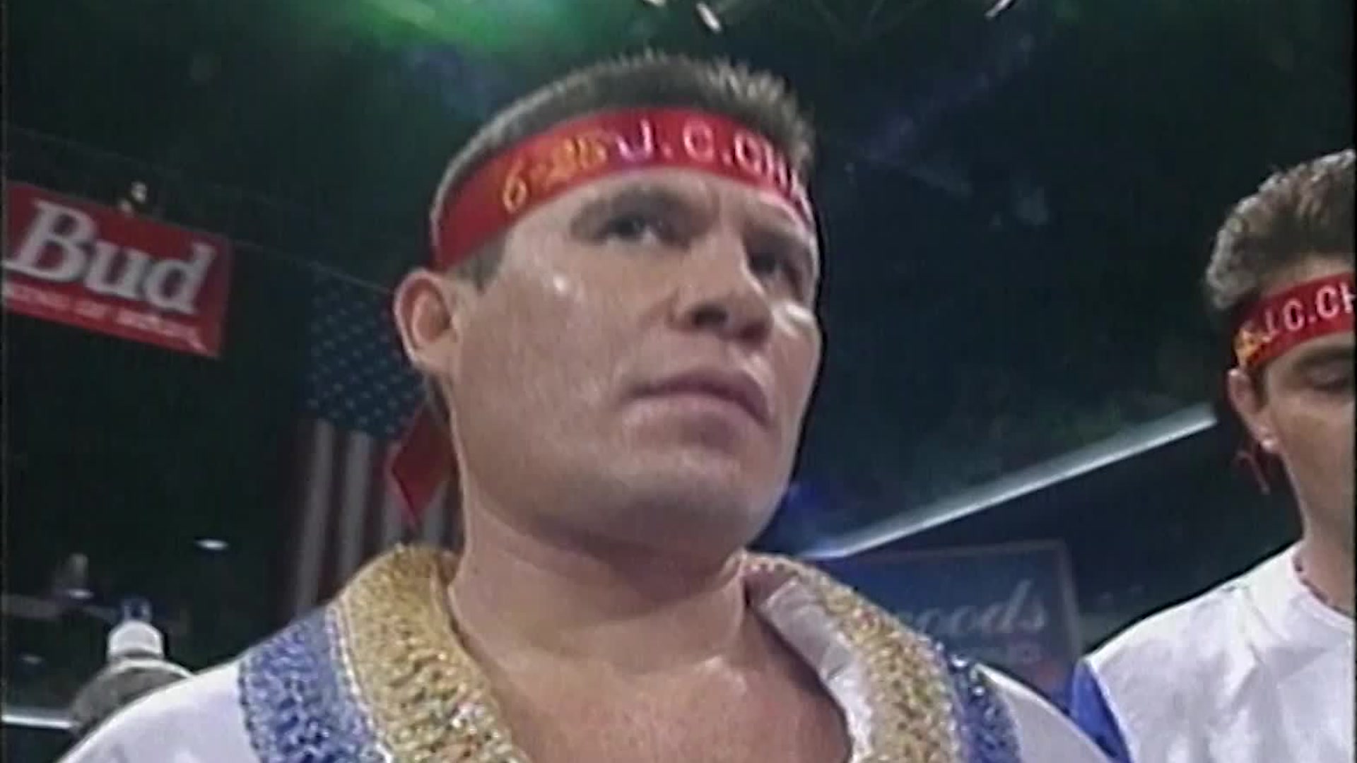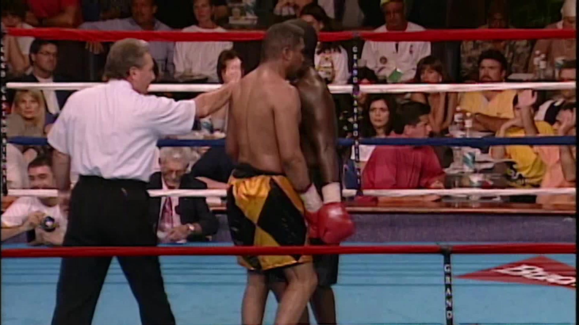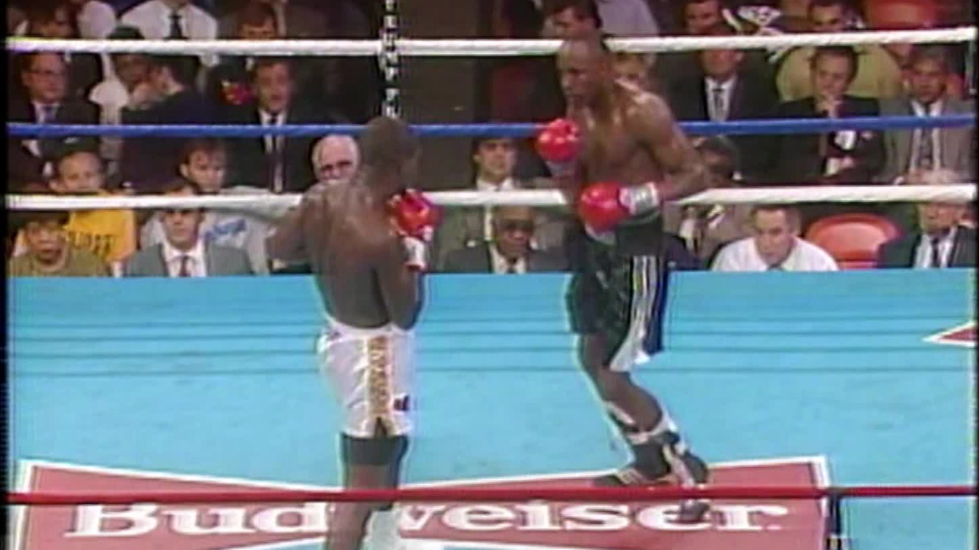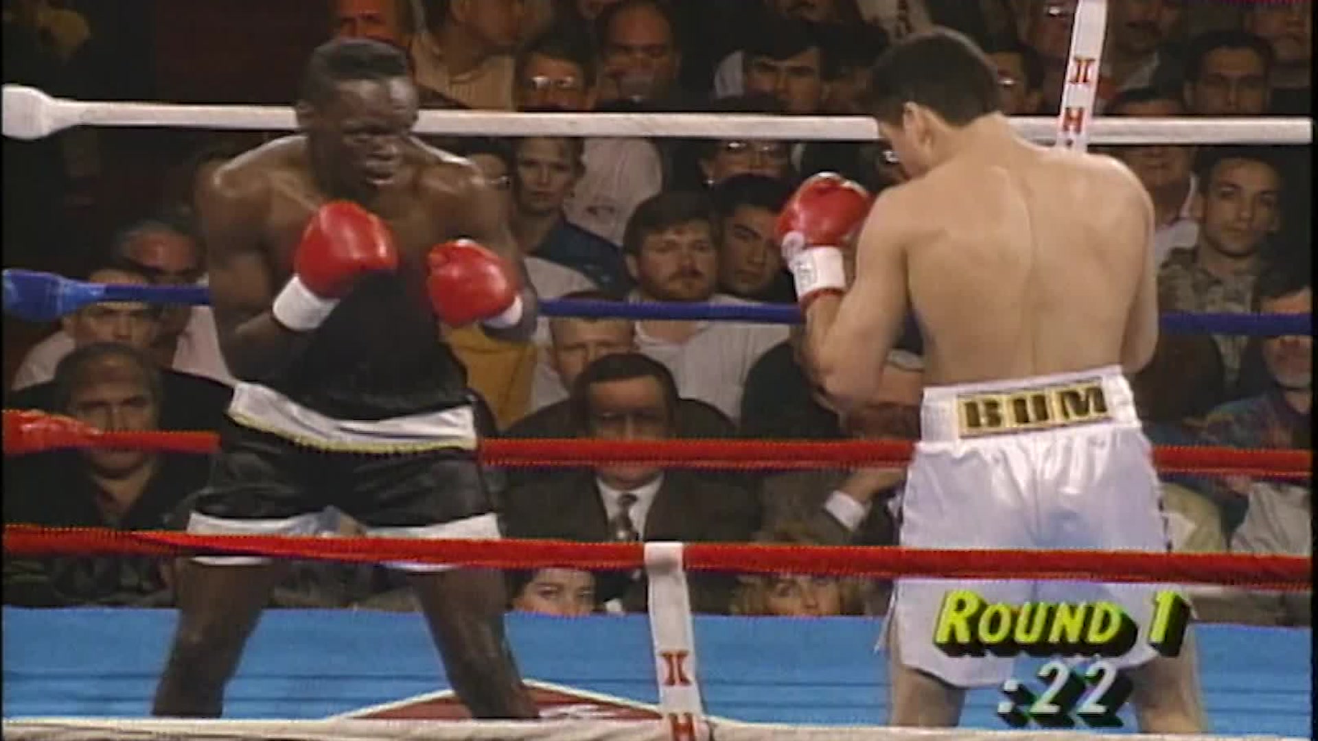 On February 13th, 1993 Roy Jones Jr. and Glenn Wolfe faced eachother at Caesars Palace in Las Vegas in a 10 round bout that ended after the first round with Wolfe being unable to continue after a bodyshot giving Jones the win.