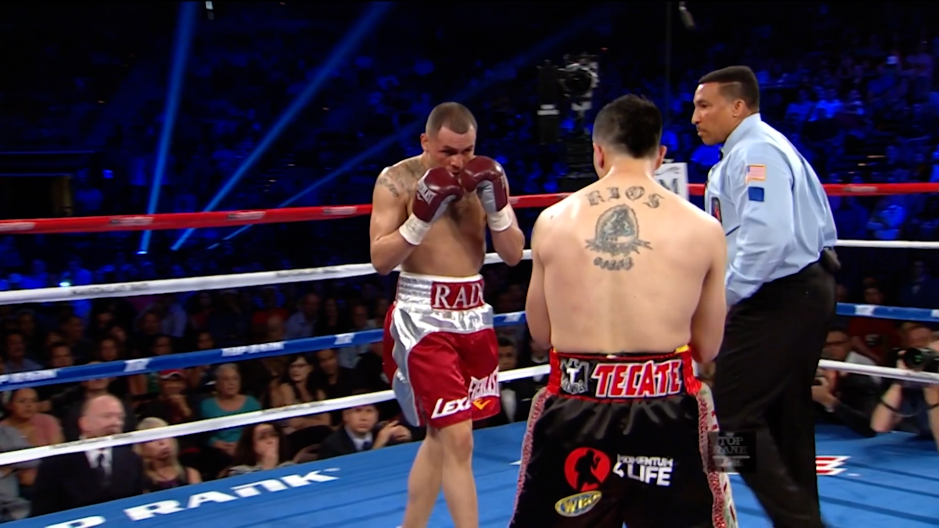 On October 13th, 2012, Brandon Rios fought Mike Alvarado for the WBO Latino Super Lightweight Title in Carson, California. Showing his quickness and agility, Rios put on a show with a 7th round TKO victory.
