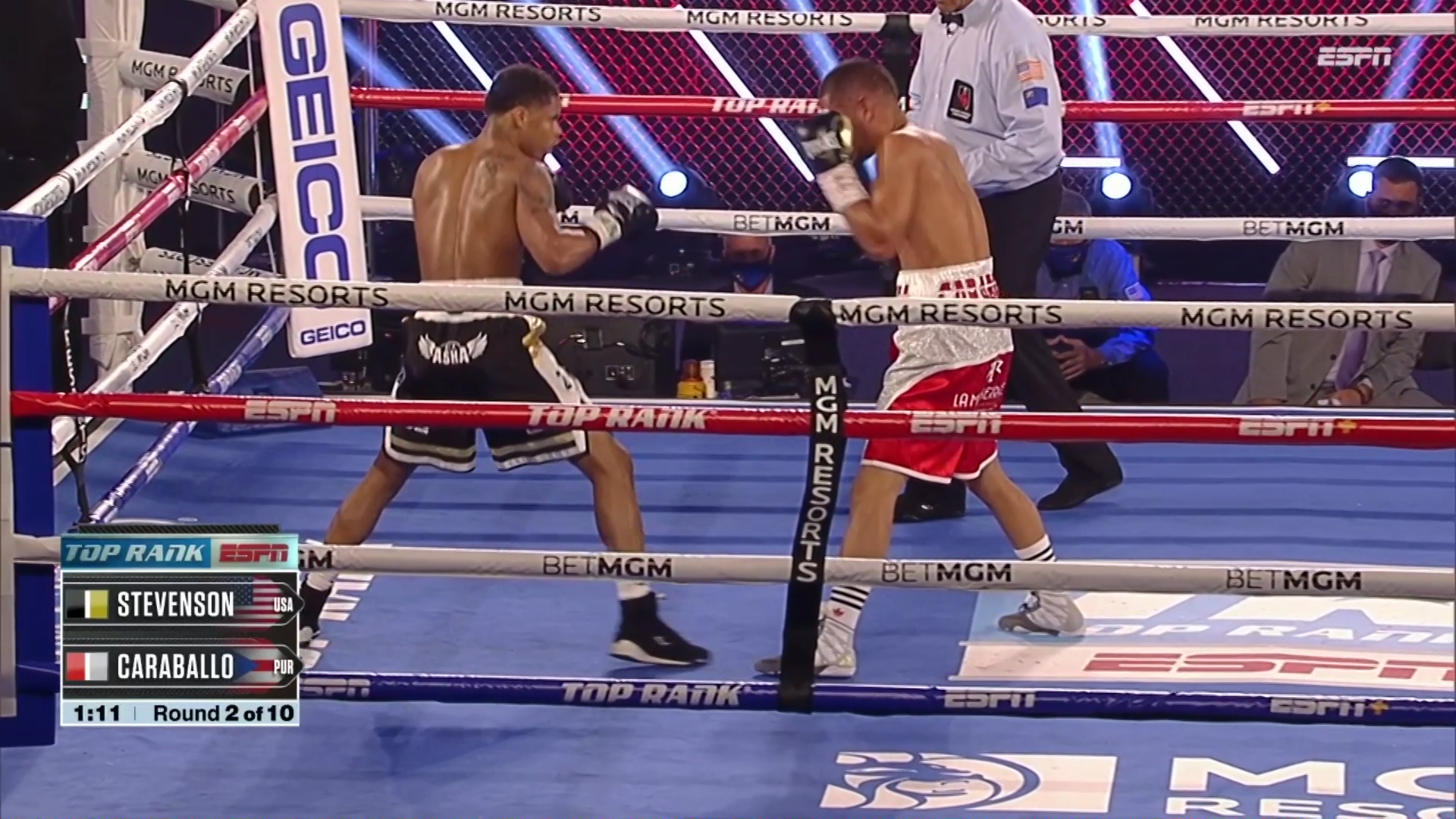 On June 9th, 2020, a young Shakur Stevenson fought Felix Caraballo in a super featherweight bout in The Bubble at MGM Grand. After knocking down Caraballo in rounds 1 and 6, Stevenson would get the KO with a devastating body shot in round six.