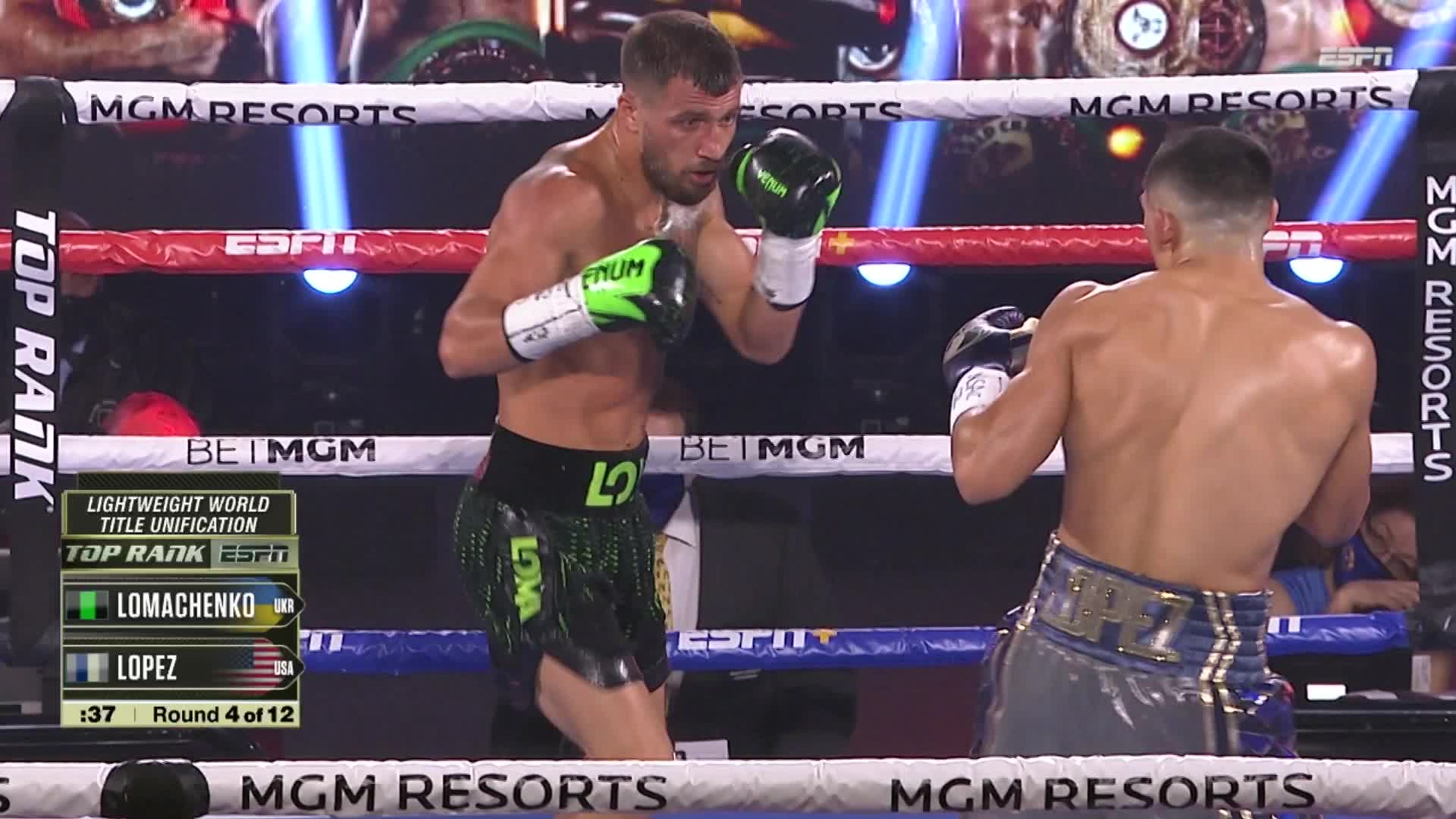 On October 17th, 2020 Teofimo Lopez and Vasiliy Lomachenko battled for IBF, WBA and WBO World Lightweight title in The Bubble at MGM Grand in Las Vegas in a 12 round bout that ended in victory for Lopez.