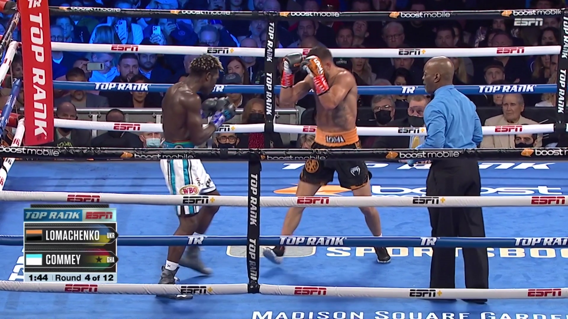 On December 11th, 2021 Vasiliy Lomachenko faced Richard Commey for the vacant WBO Inter-continental lightweight title at Madision Square Garden in New York with Commey going down in round 7 the bout ended in a unanimous decision victory for Loma.