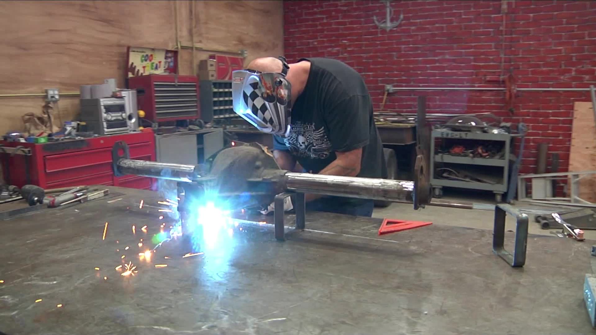Ian transplants an old 1948 cab onto a modern roll-off truck for his friend Bill.