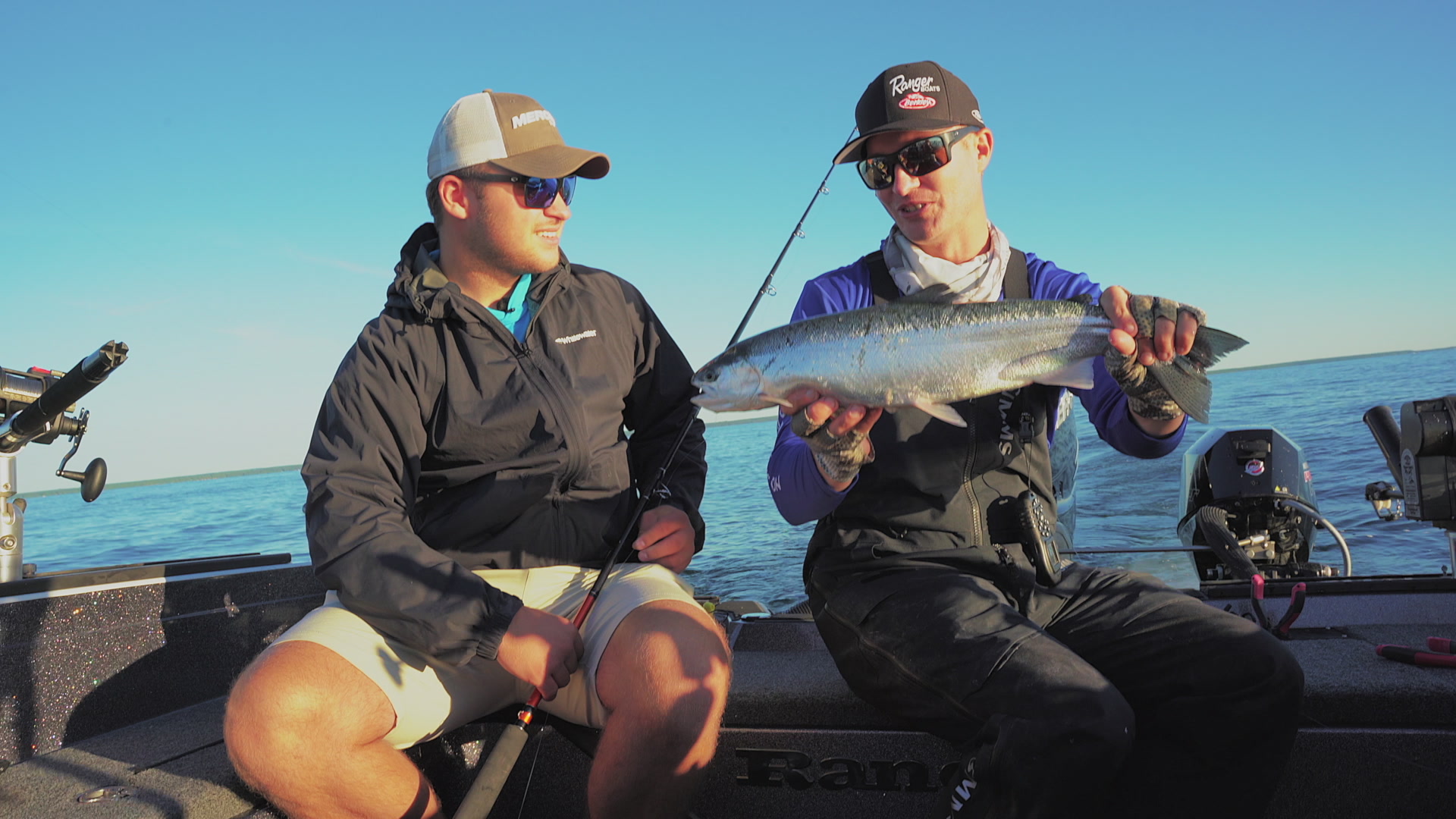 Chase Parsons, Korey Sprengel and Matt Schiefelbein catch Lake Michigan salmon using traditional trolling techniques.