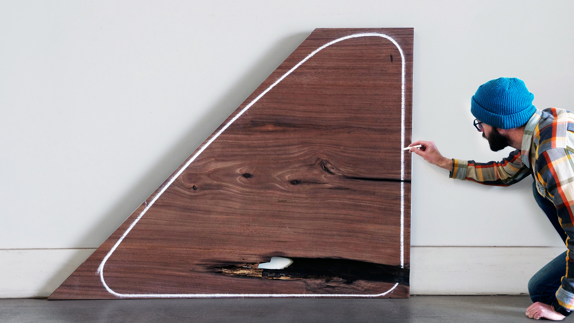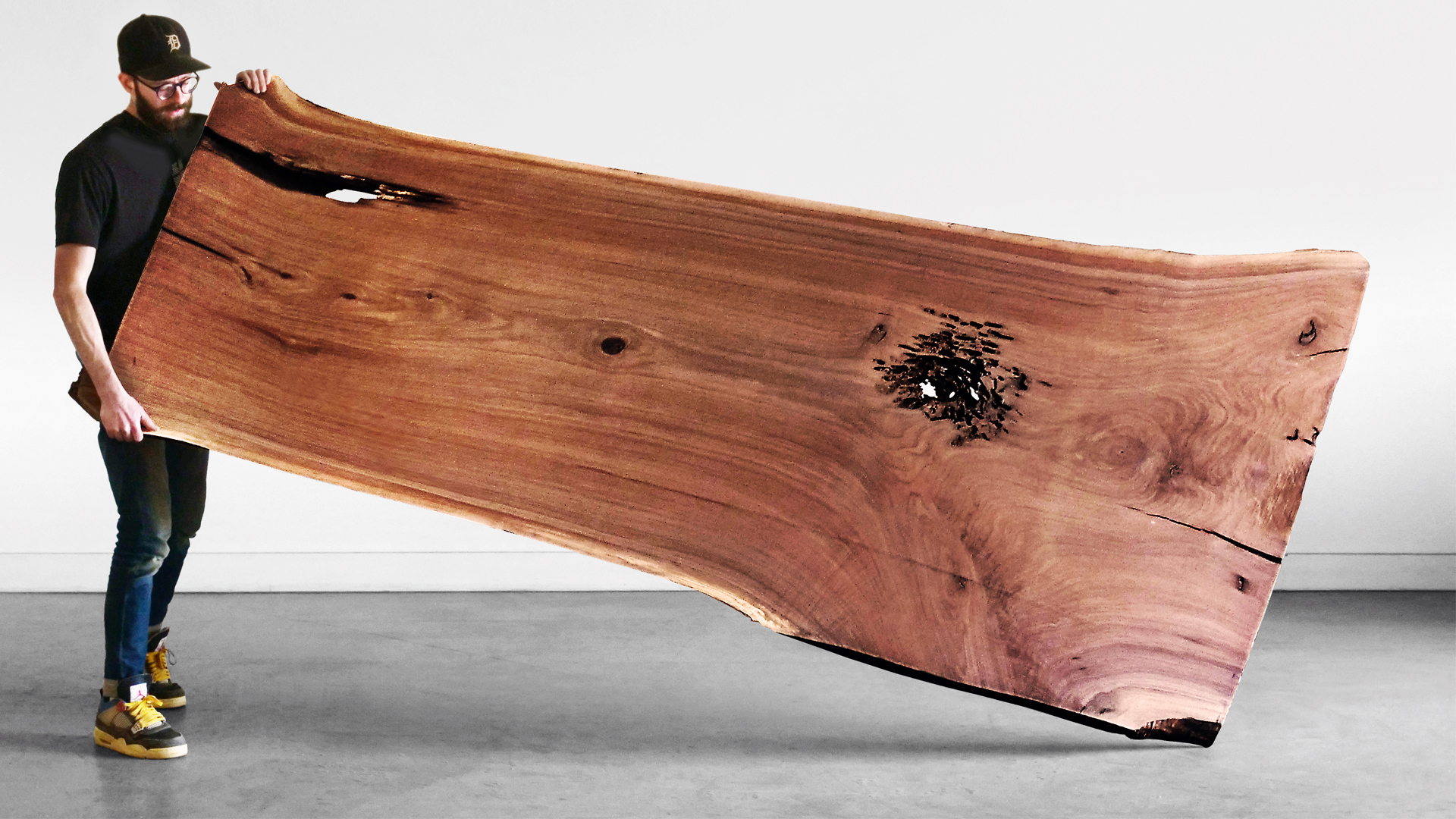Chris makes a dining table from a slab of walnut, a wood he has never worked with.
