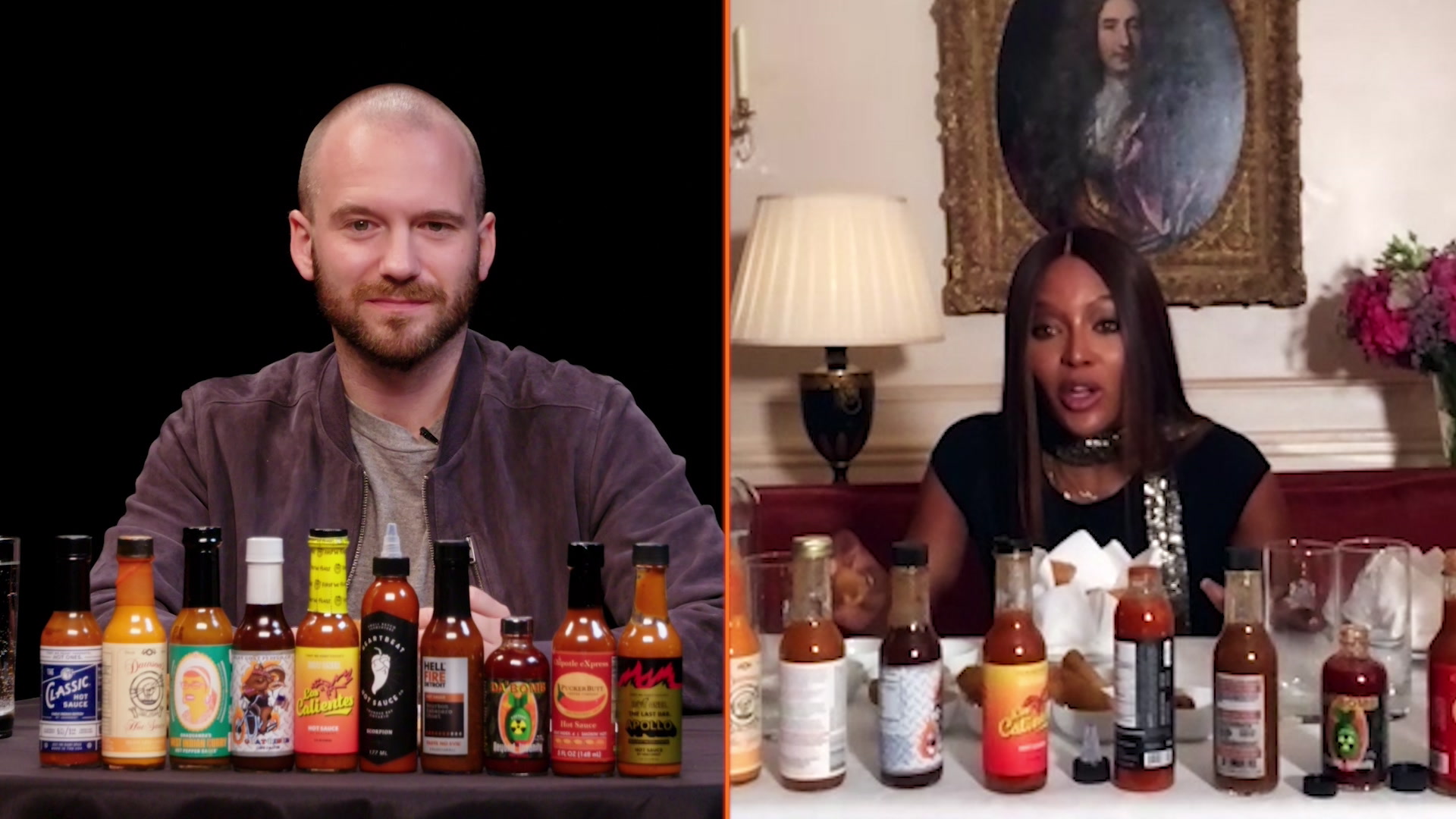 Host Sean Evans asks his celebrity guests questions while they attempt to complete rounds of chicken wings coated in spicy hot sauce.