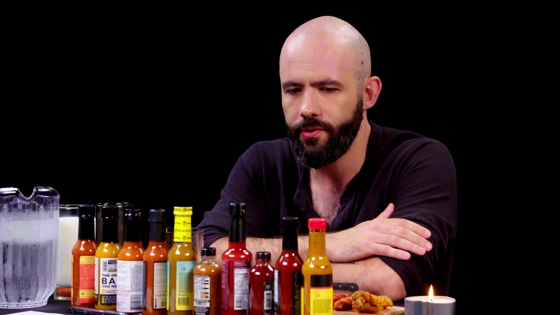 Host Sean Evans asks his celebrity guests questions while they attempt to complete rounds of chicken wings coated in spicy hot sauce.