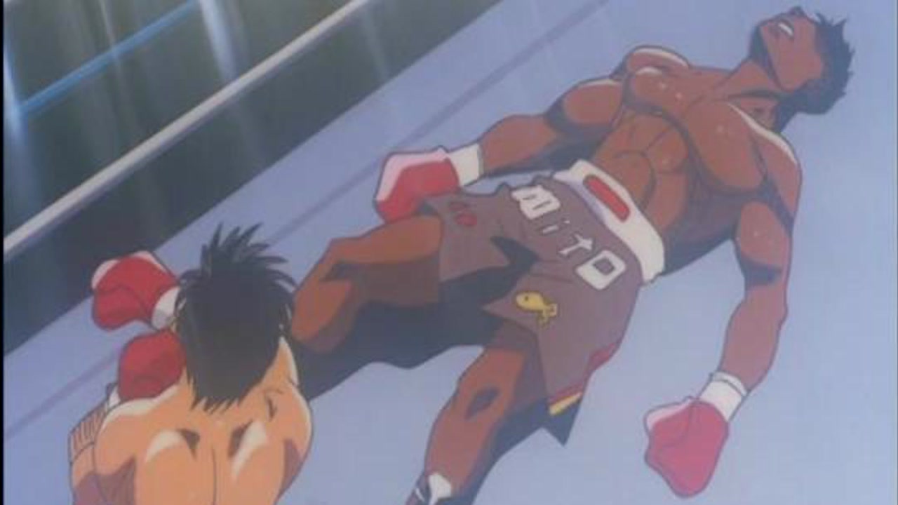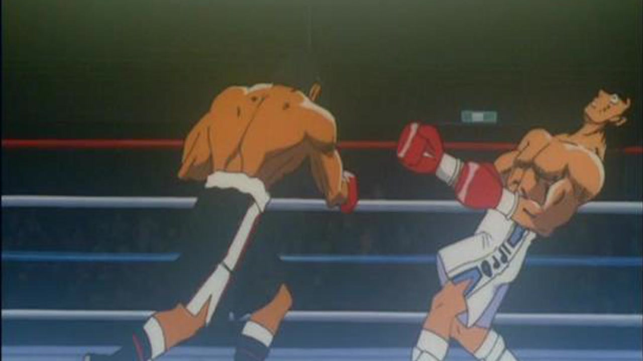 The fight between Ippo and Volg carries on. Ippo takes a lot of hits and gets knocked down a couple times.
