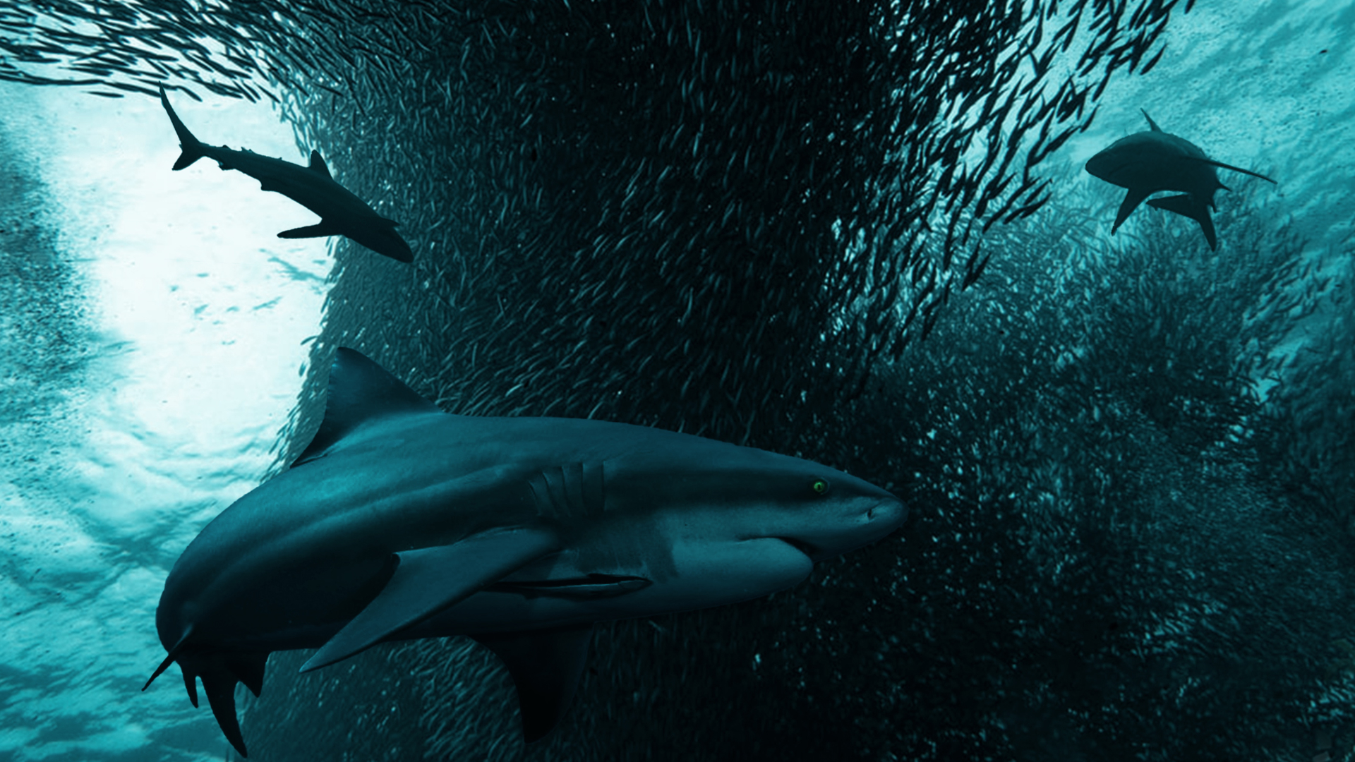 Driven by instinct, the unstoppable slick of fish is followed by one of the greatest gatherings of predators.