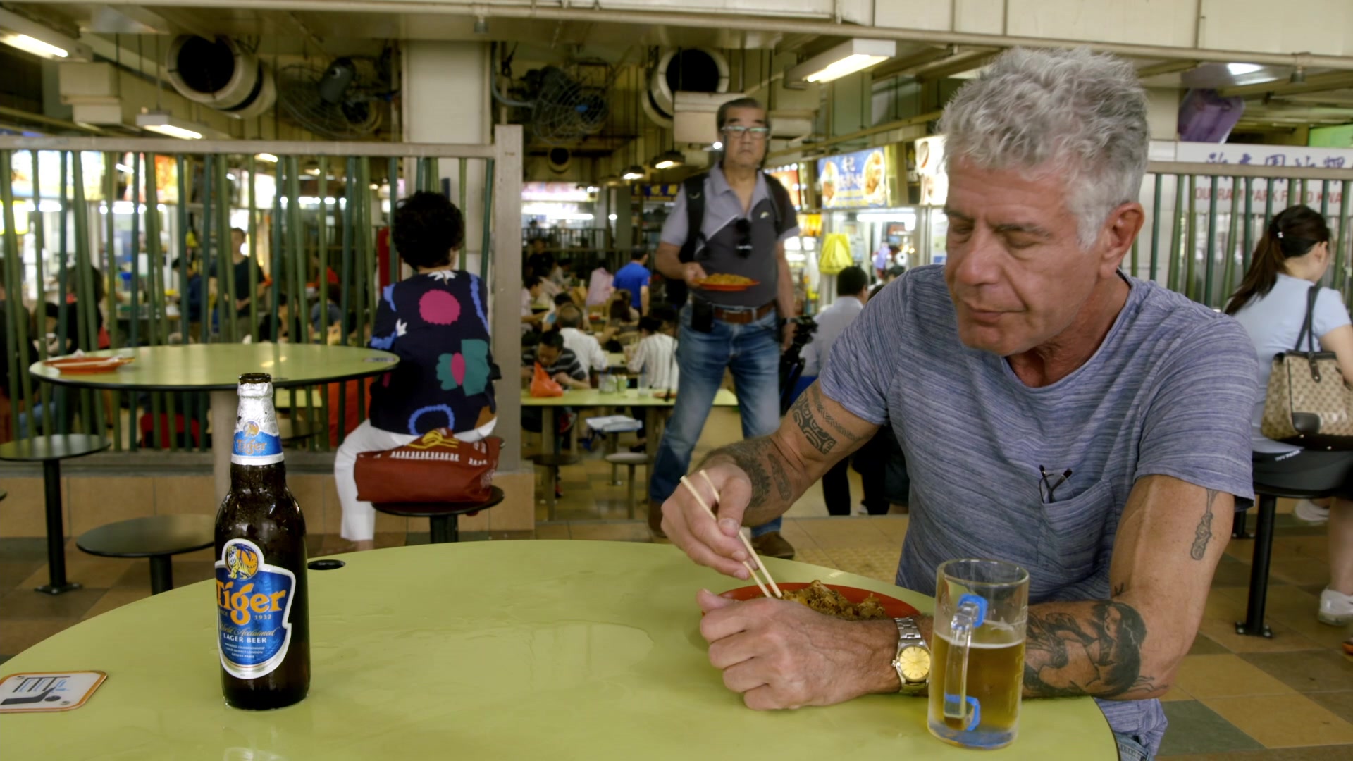 Bourdain immerses himself in the array of multicultural foods in Singapore.