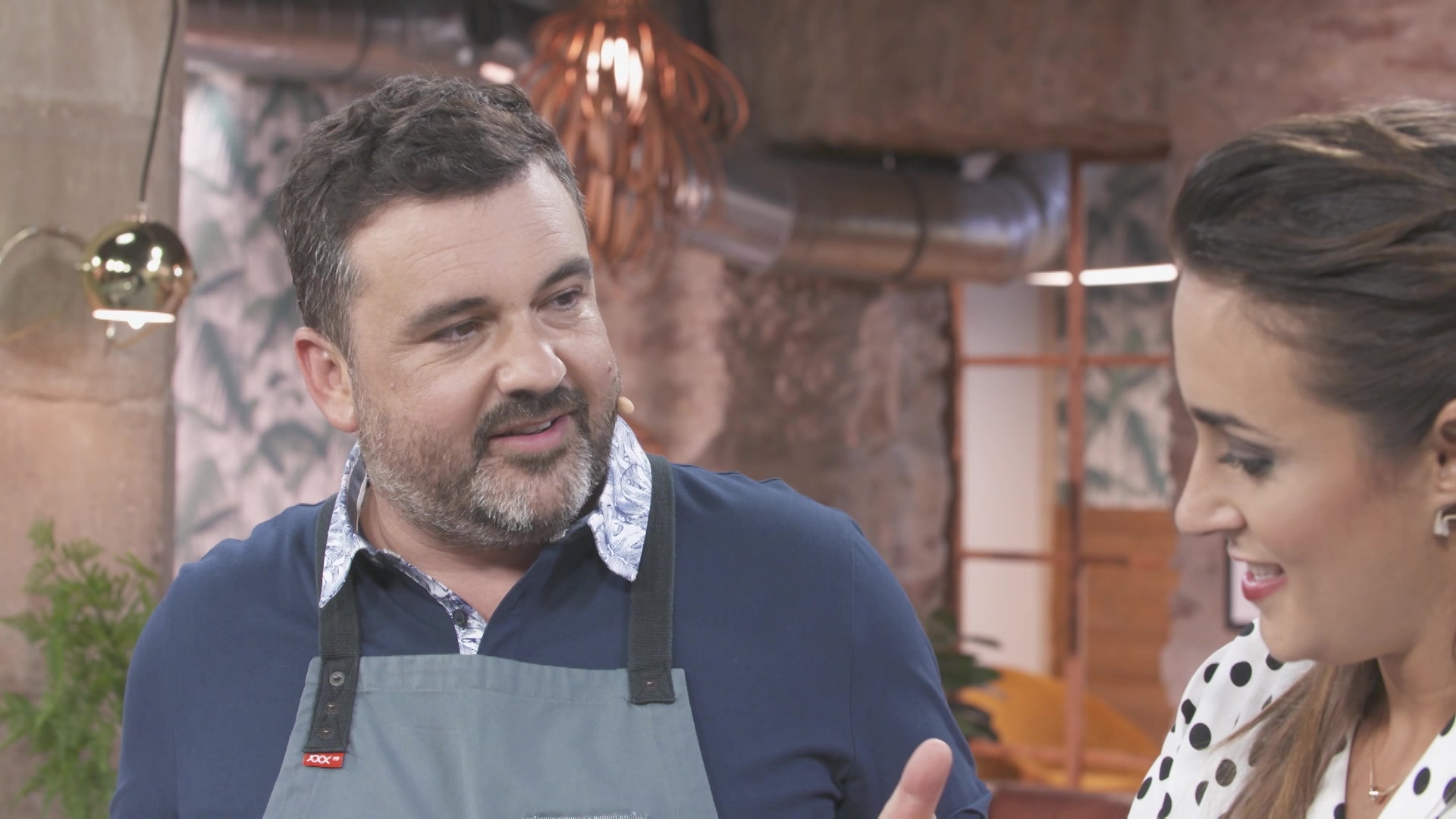 El cocinero Ander Gonzalez elabora una receta mientras la nutricionista Gabriela Uriarte explica las propiedades de los ingredientes utilizados y analiza el equilibrio dietetico de las recetas.