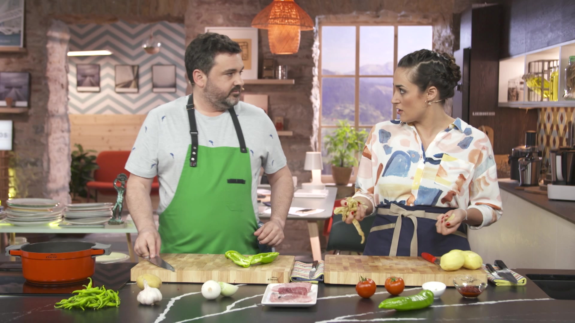 El cocinero Ander Gonzalez elabora una receta mientras la nutricionista Gabriela Uriarte explica las propiedades de los ingredientes utilizados y analiza el equilibrio dietetico de las recetas.
