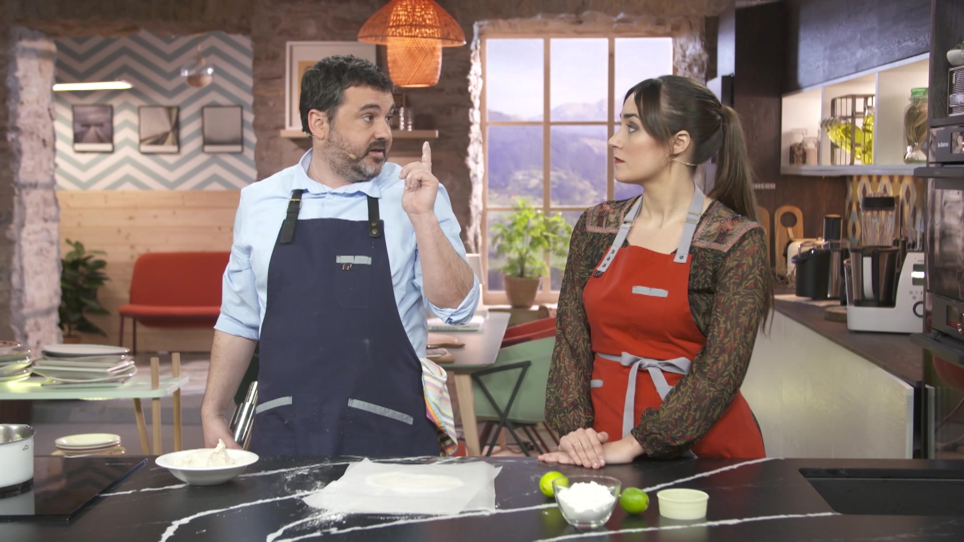 El cocinero Ander Gonzalez elabora una receta mientras la nutricionista Gabriela Uriarte explica las propiedades de los ingredientes utilizados y analiza el equilibrio dietetico de las recetas.