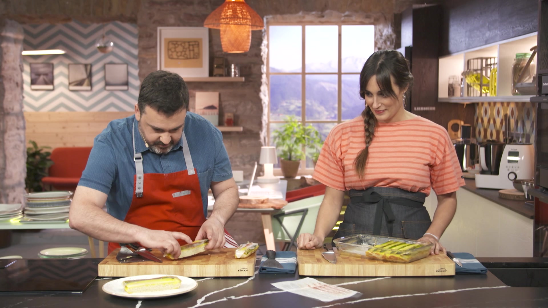 El cocinero Ander Gonzalez elabora una receta mientras la nutricionista Gabriela Uriarte explica las propiedades de los ingredientes utilizados y analiza el equilibrio dietetico de las recetas.