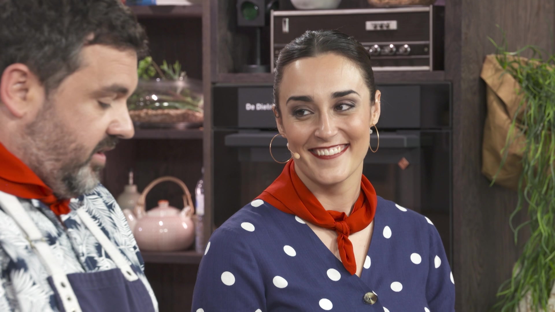 El cocinero Ander Gonzalez elabora una receta mientras la nutricionista Gabriela Uriarte explica las propiedades de los ingredientes utilizados y analiza el equilibrio dietetico de las recetas.