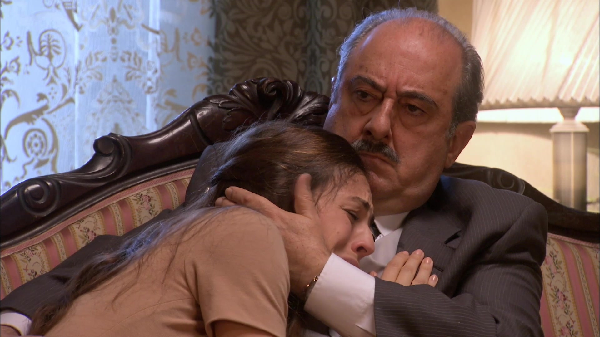 Bernardo y Clotilde encuentran a Asunción en el suelo, tras su intento de suicidio.