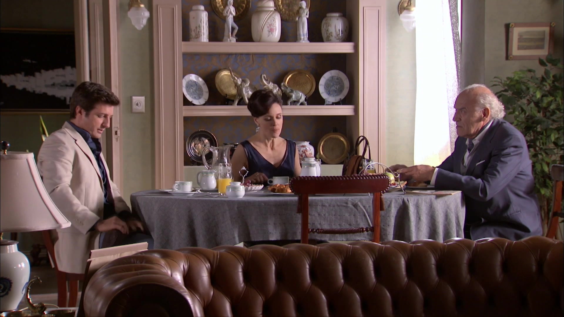 En el velatorio, celebrado en el hogar de los Cortázar, se presentan Santiago Miranda y su hijo.
