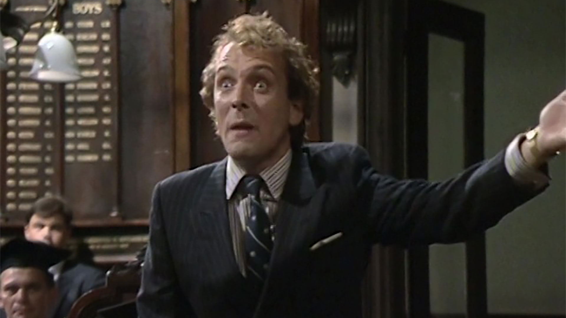 Alan's hateful father-in-law, Roland Gidleigh-Park, threatens to have him thrown out of his seat.