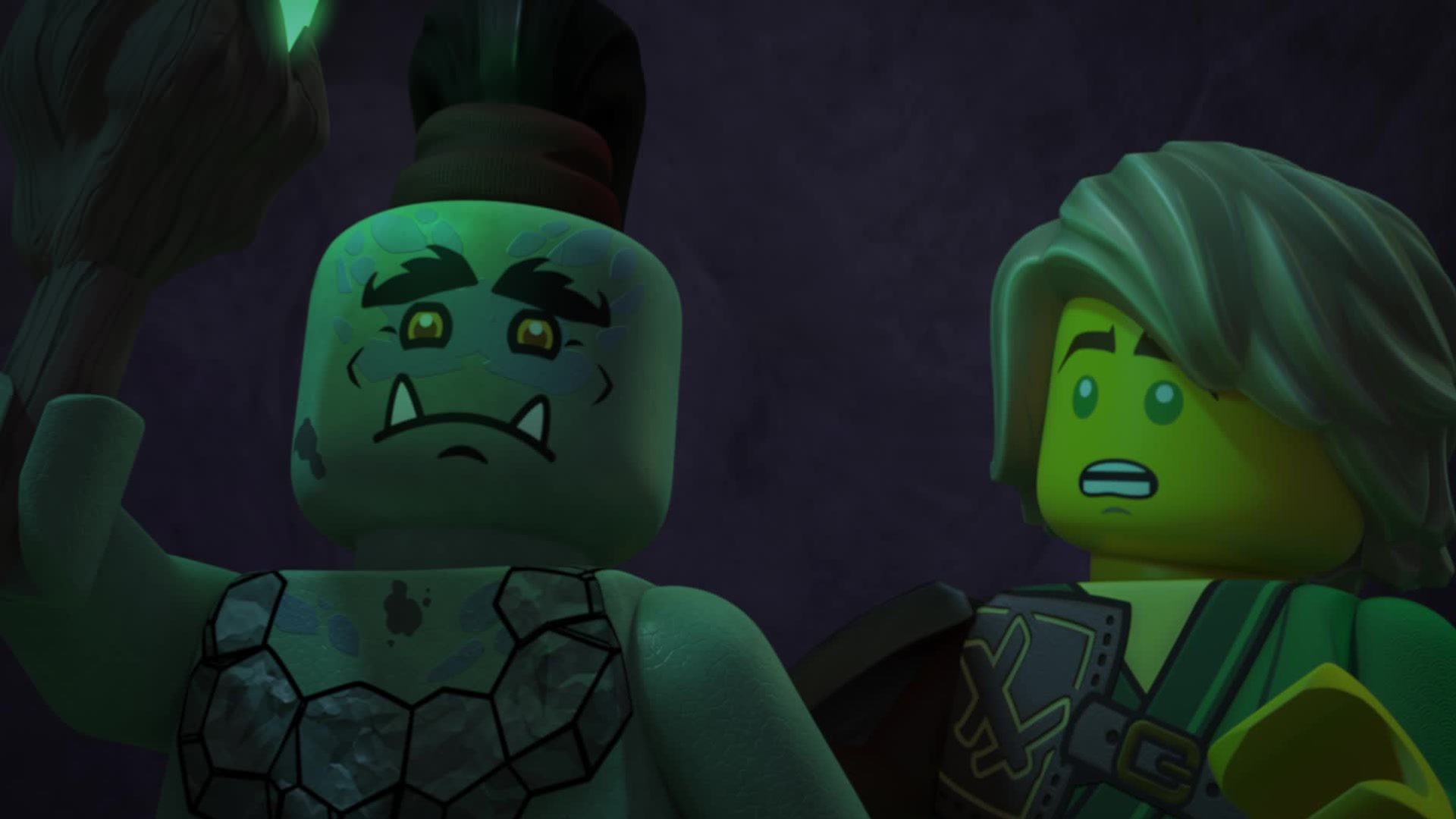 Jay, Nya and Lloyd are led into the Mines of Shintaro by Murt who brings them back to the Munce "Home-Cave". The Munce Queen takes a liking to Jay.