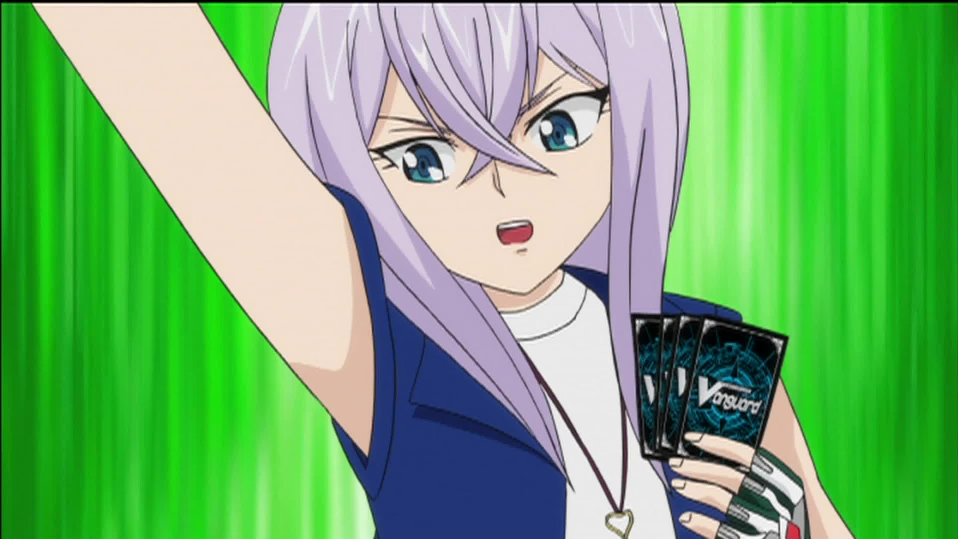 After taking a look at Aichi's deck, Shin decides to show him "something nice". Shin has Aichi battle Misaki Tokura, who, despite working at the card shop, has never actually participated in a Vanguard fight before.