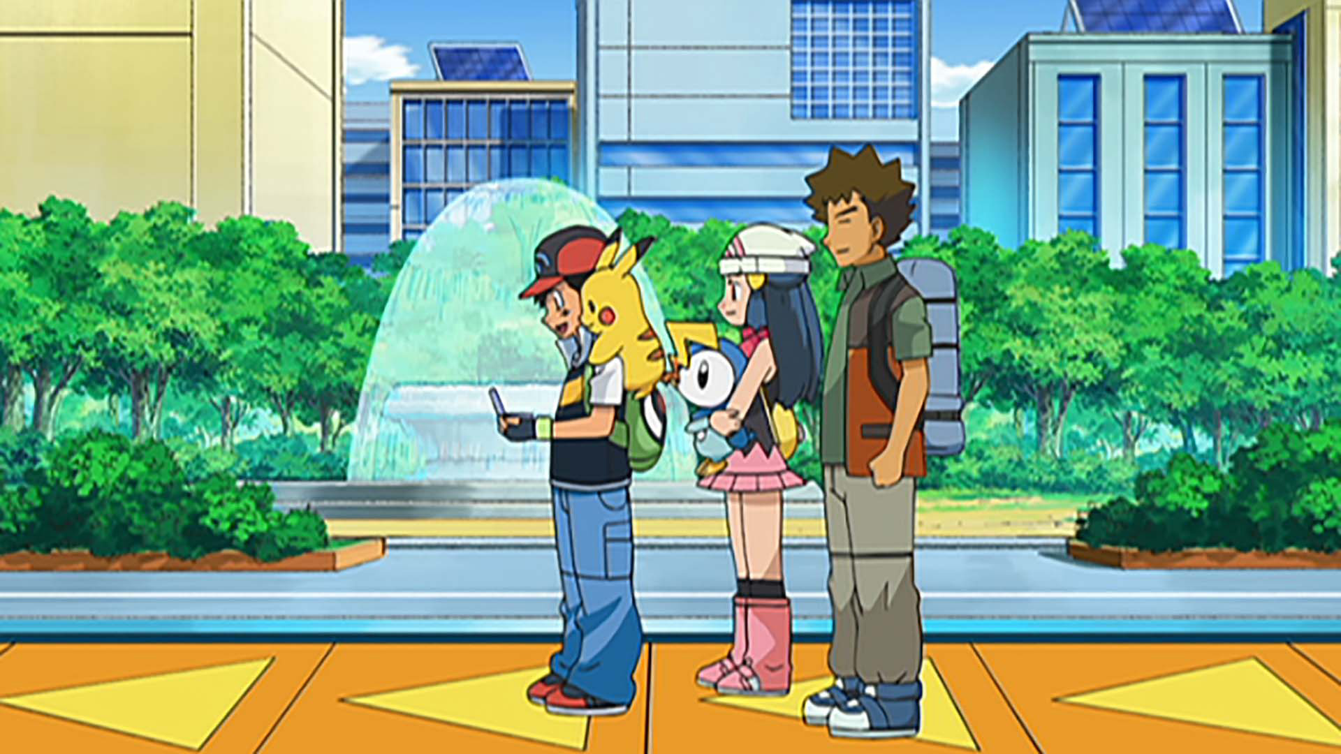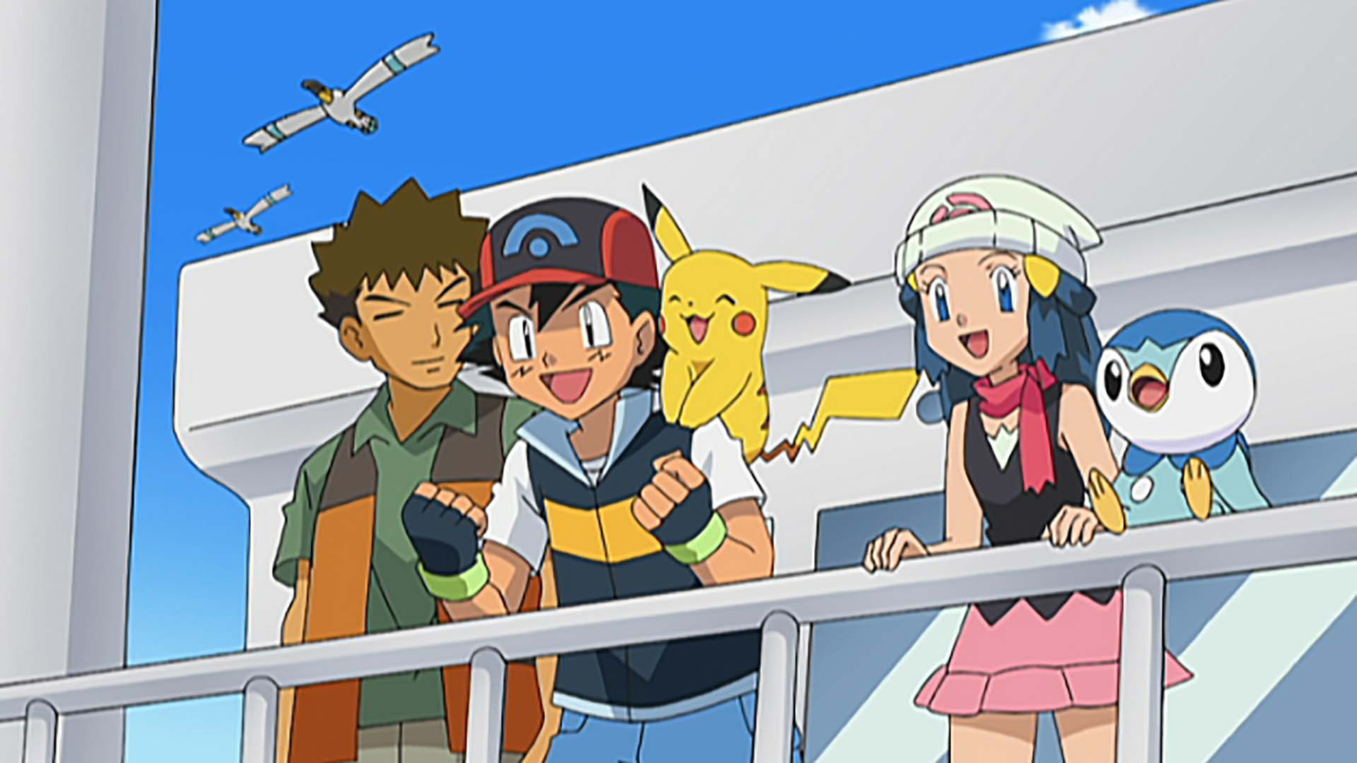 As our heroes make their way to Twinleaf Town via ferry, a group of injured Pokémon challenges Brock to develop new skills, giving him new ideas for the future!