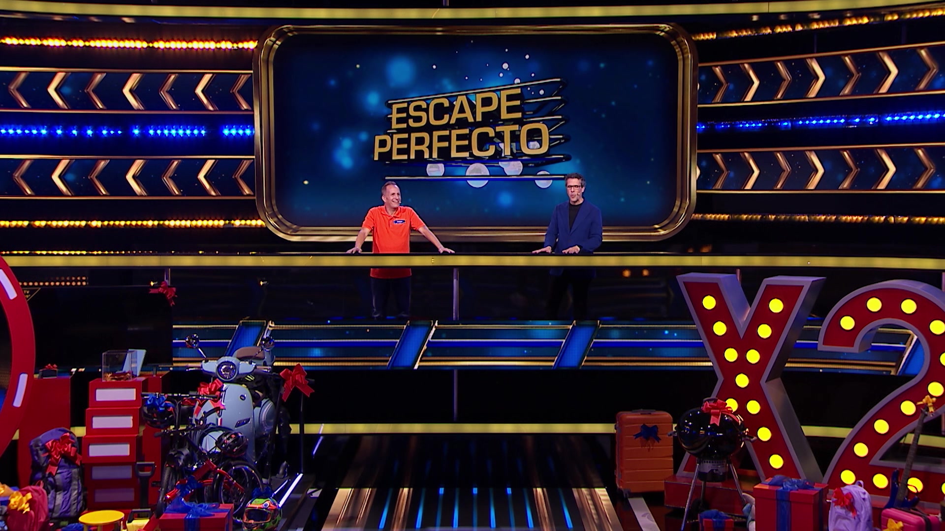 Parejas se someten a retos para atrapar premios adentro de una jaula en una carrera contra el tiempo.