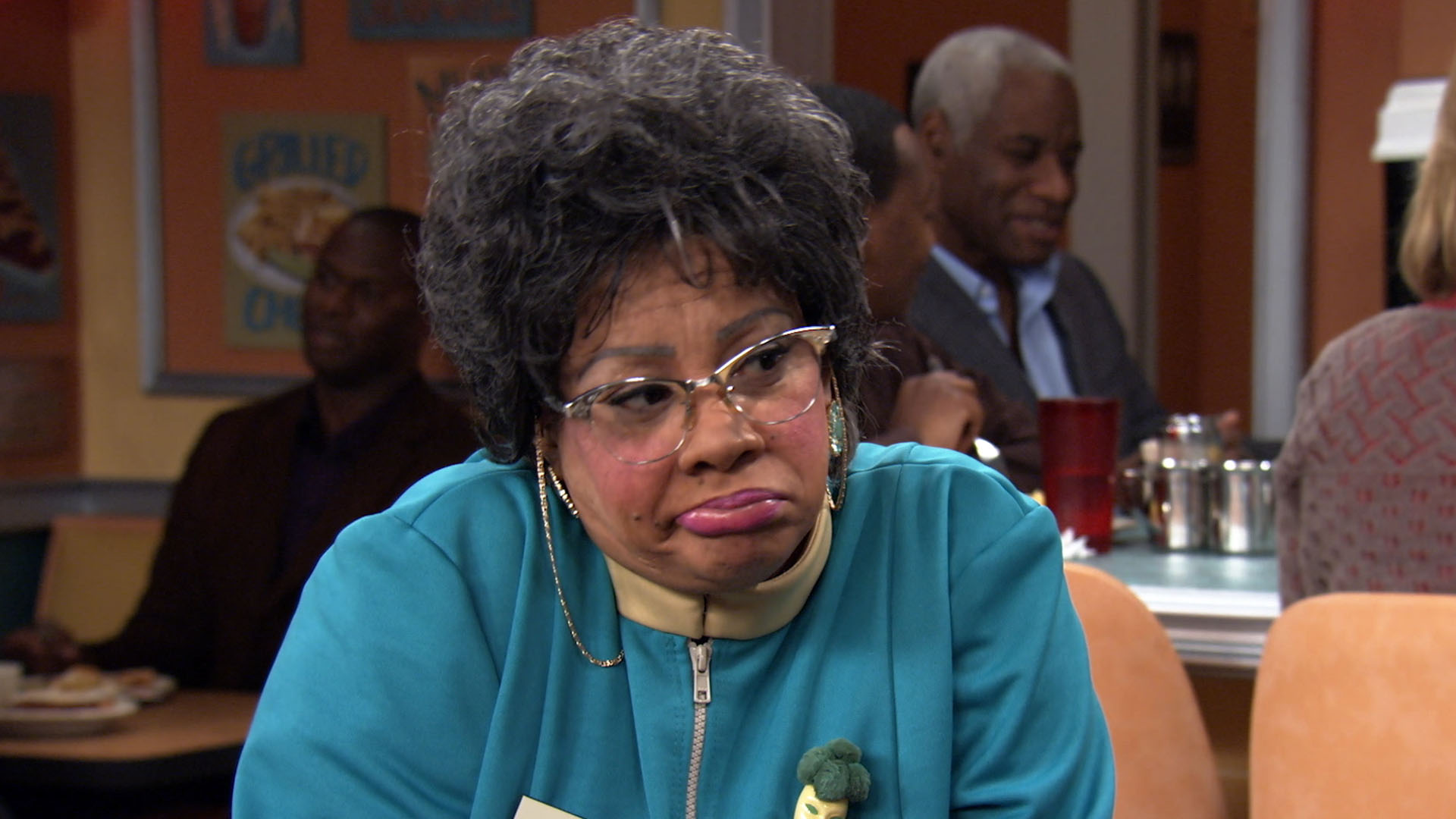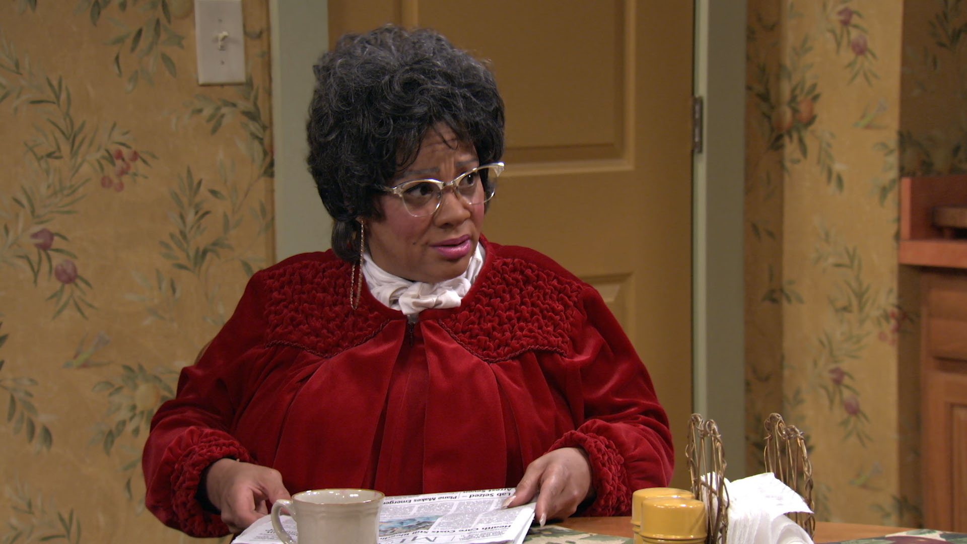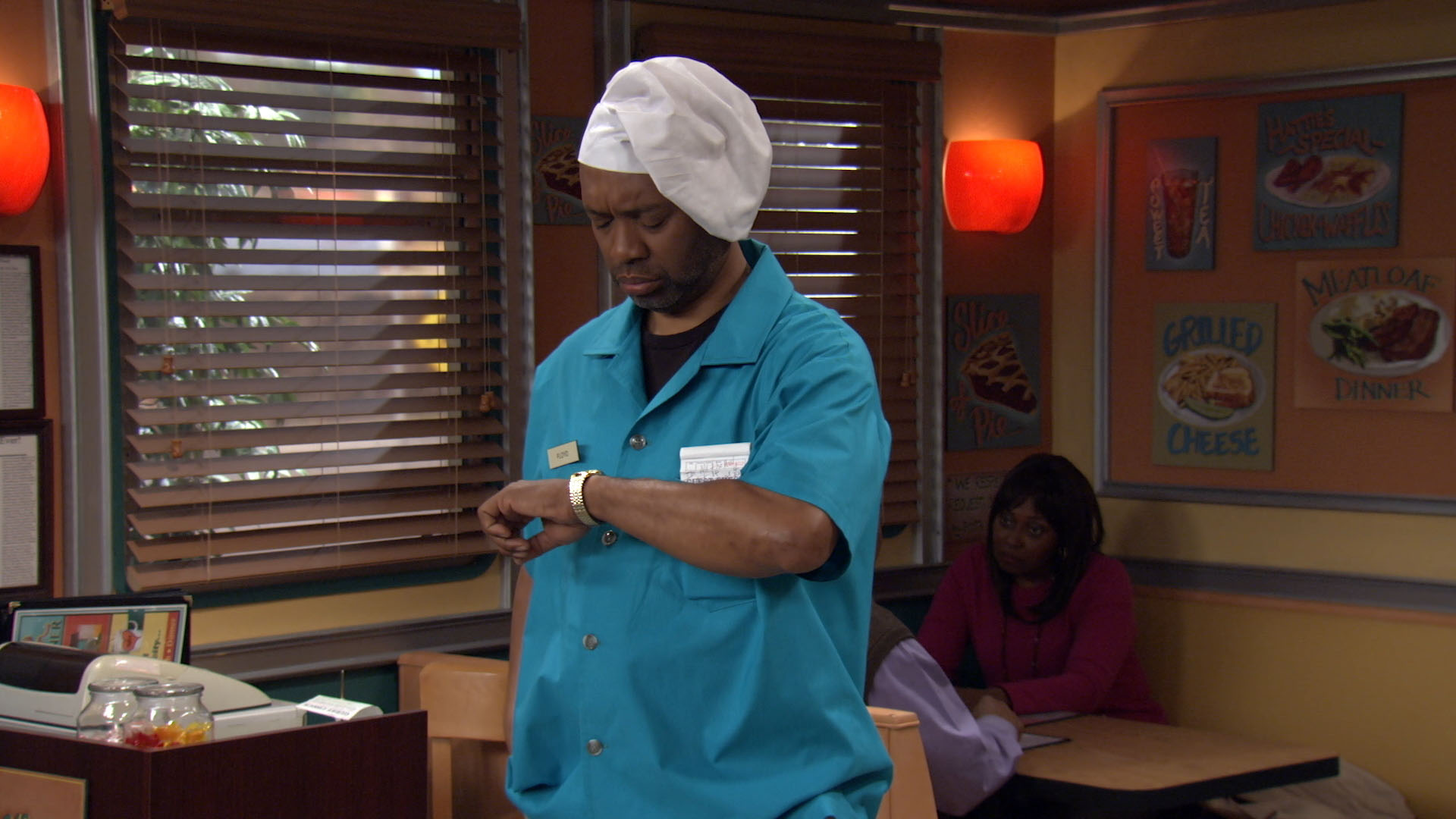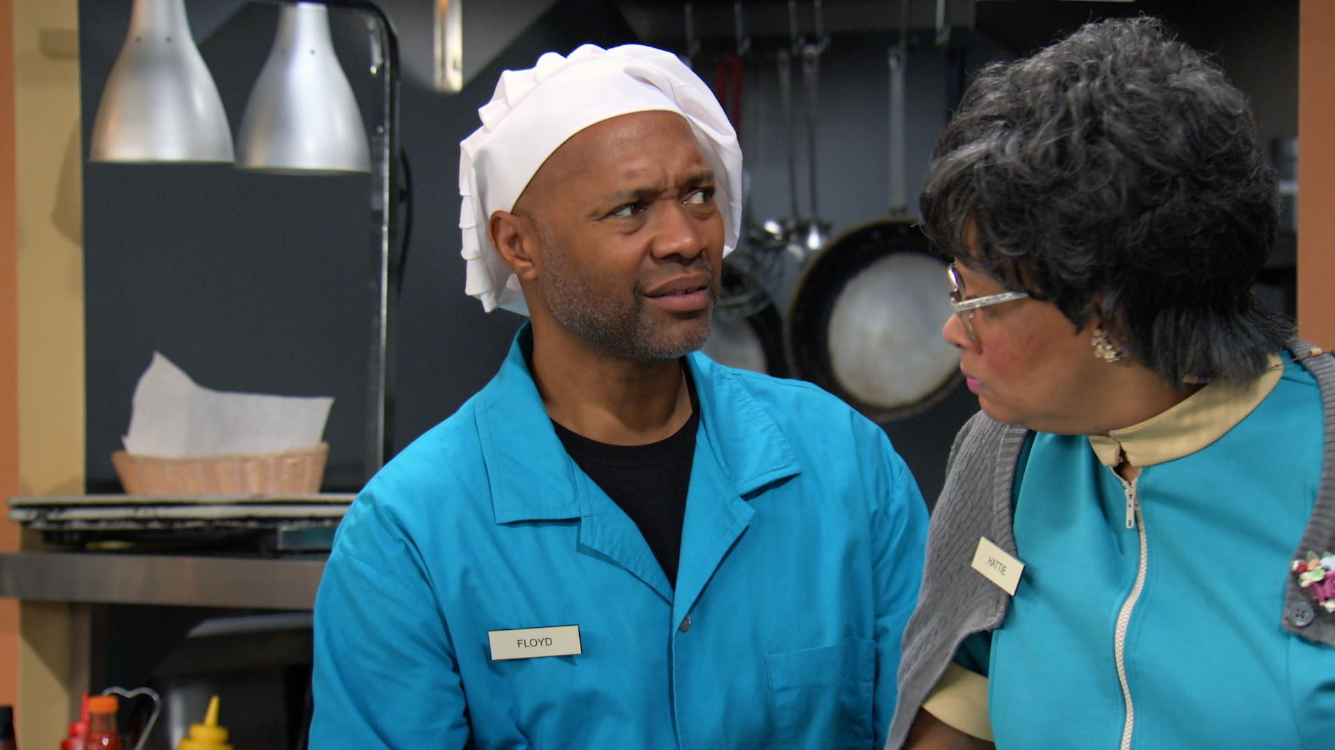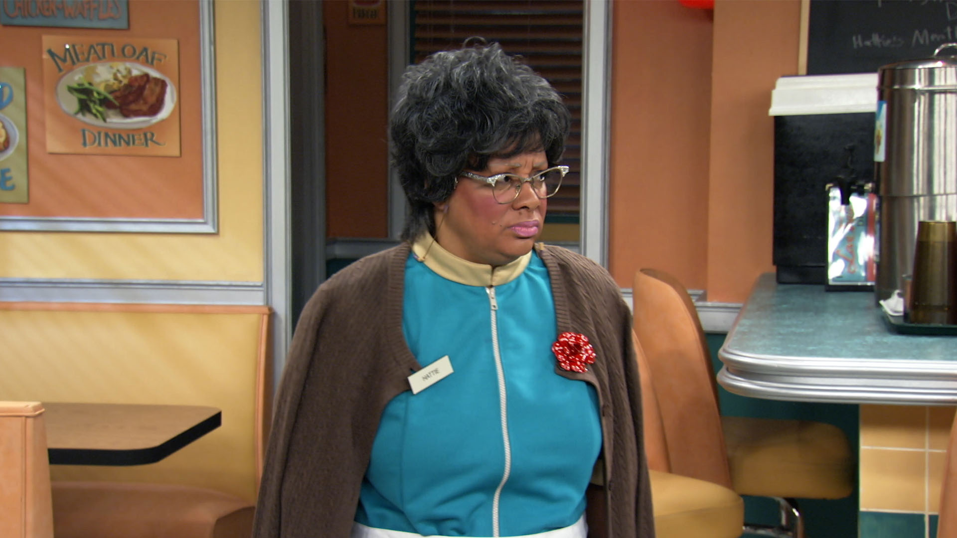 Hattie falls while working late one night at the diner and feigns serious injury to gain sympathy and unnecessary assistance.
