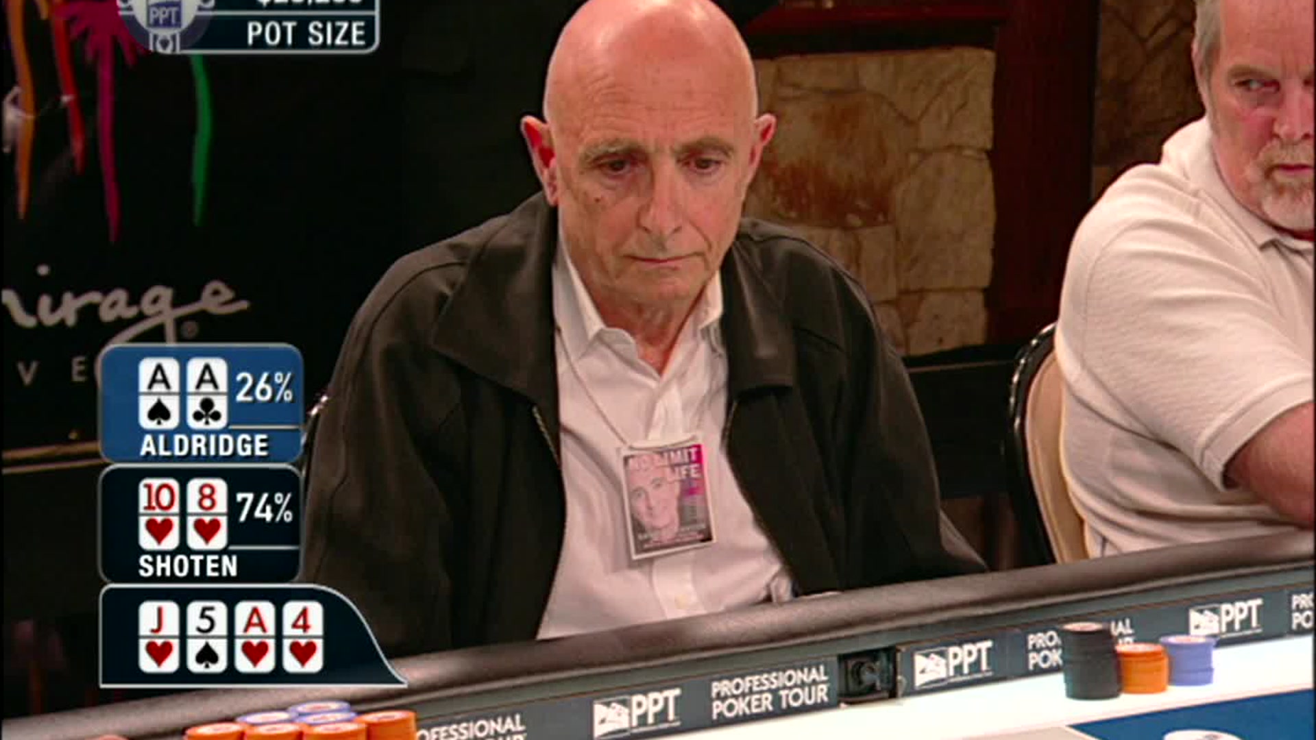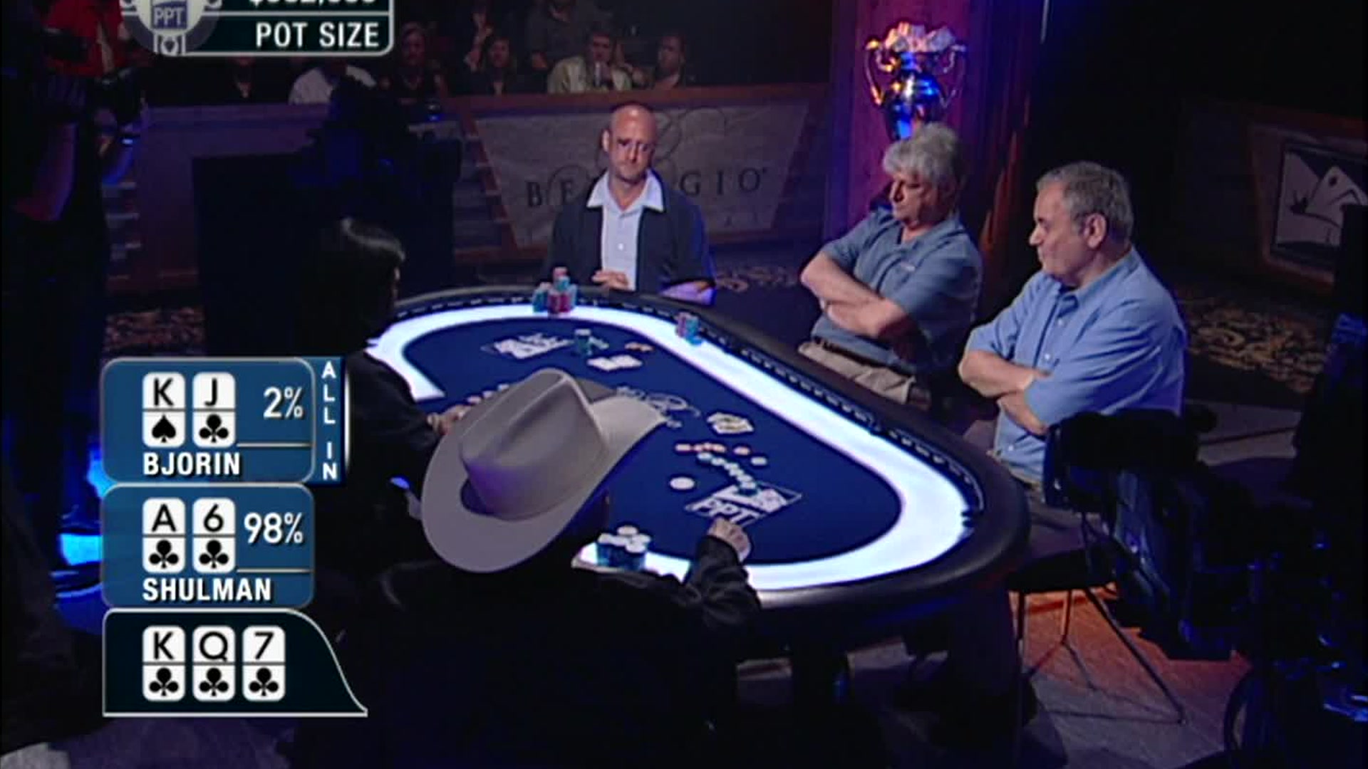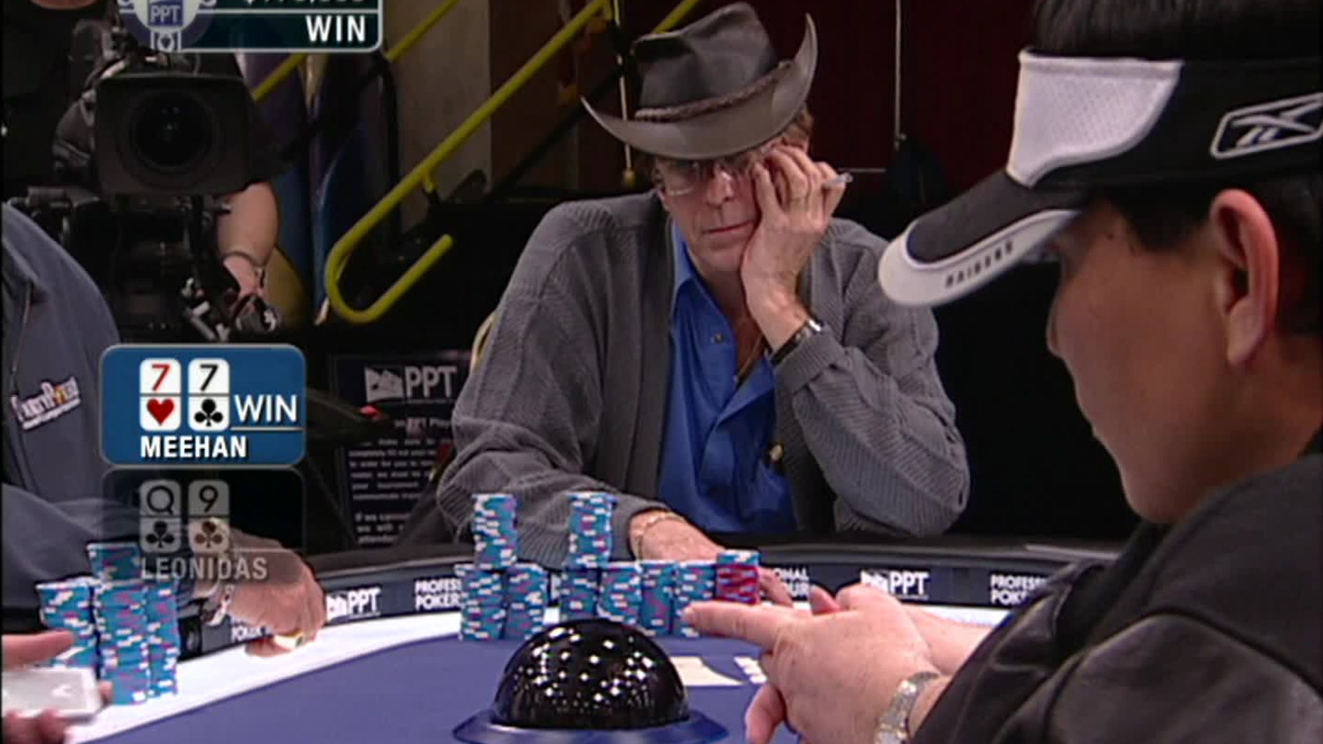 Third quarter PPT action from the Mirage kicks off and everyone is feeling the heat. Captain Tom Franklin lets the chips (and the barbs) fly as he tries to plant his flag and take ownership of the star-studded spotlight table.