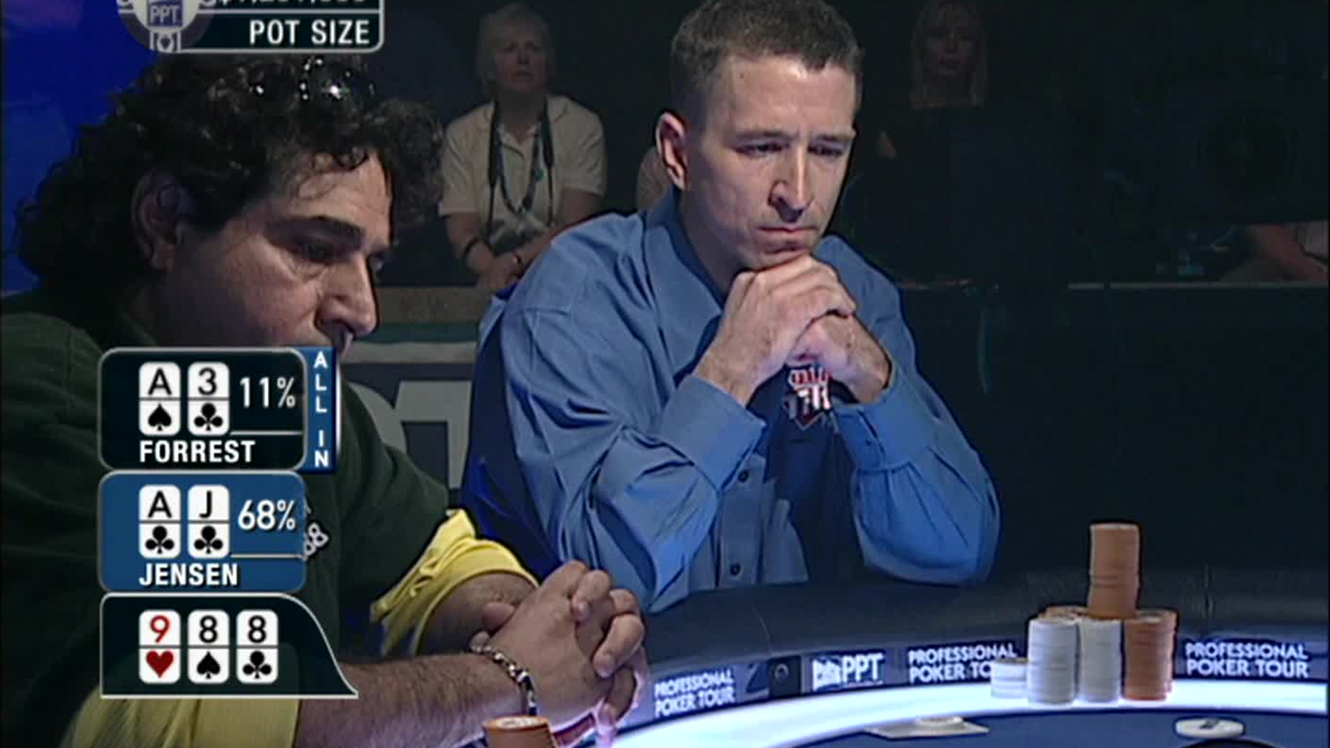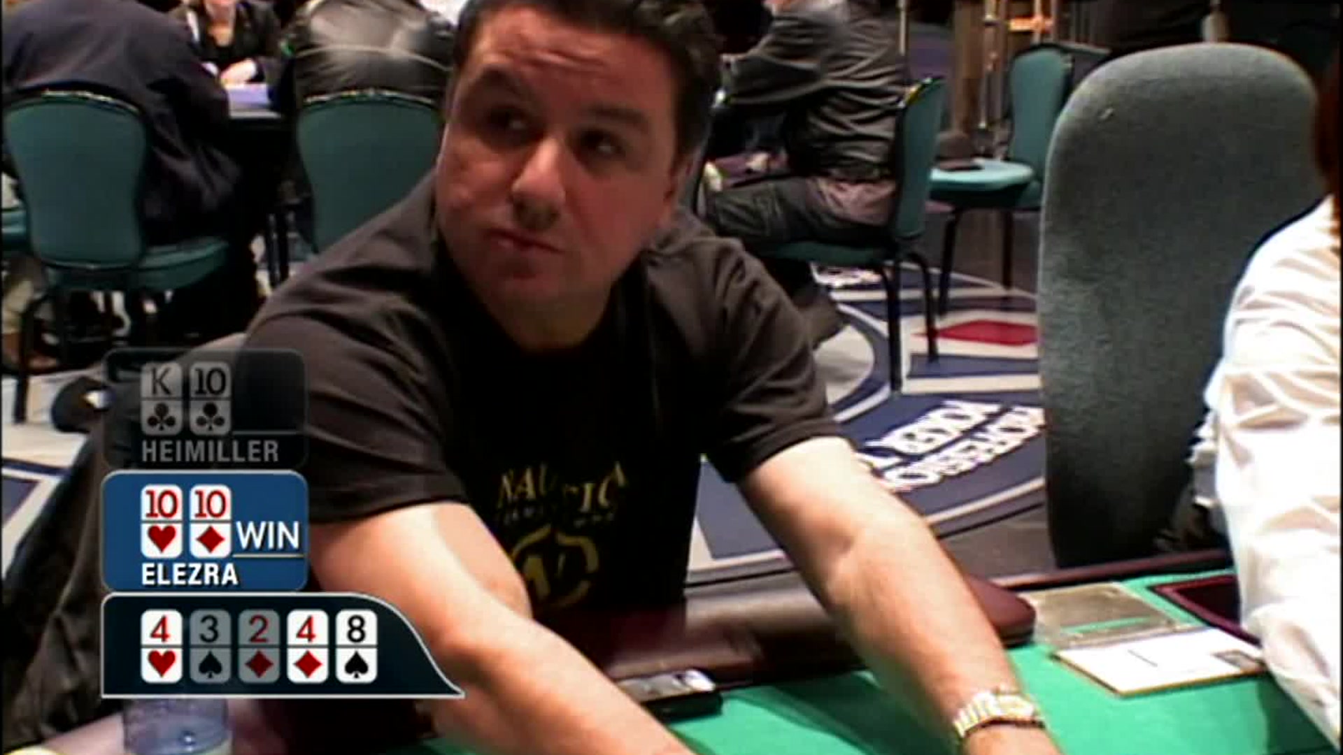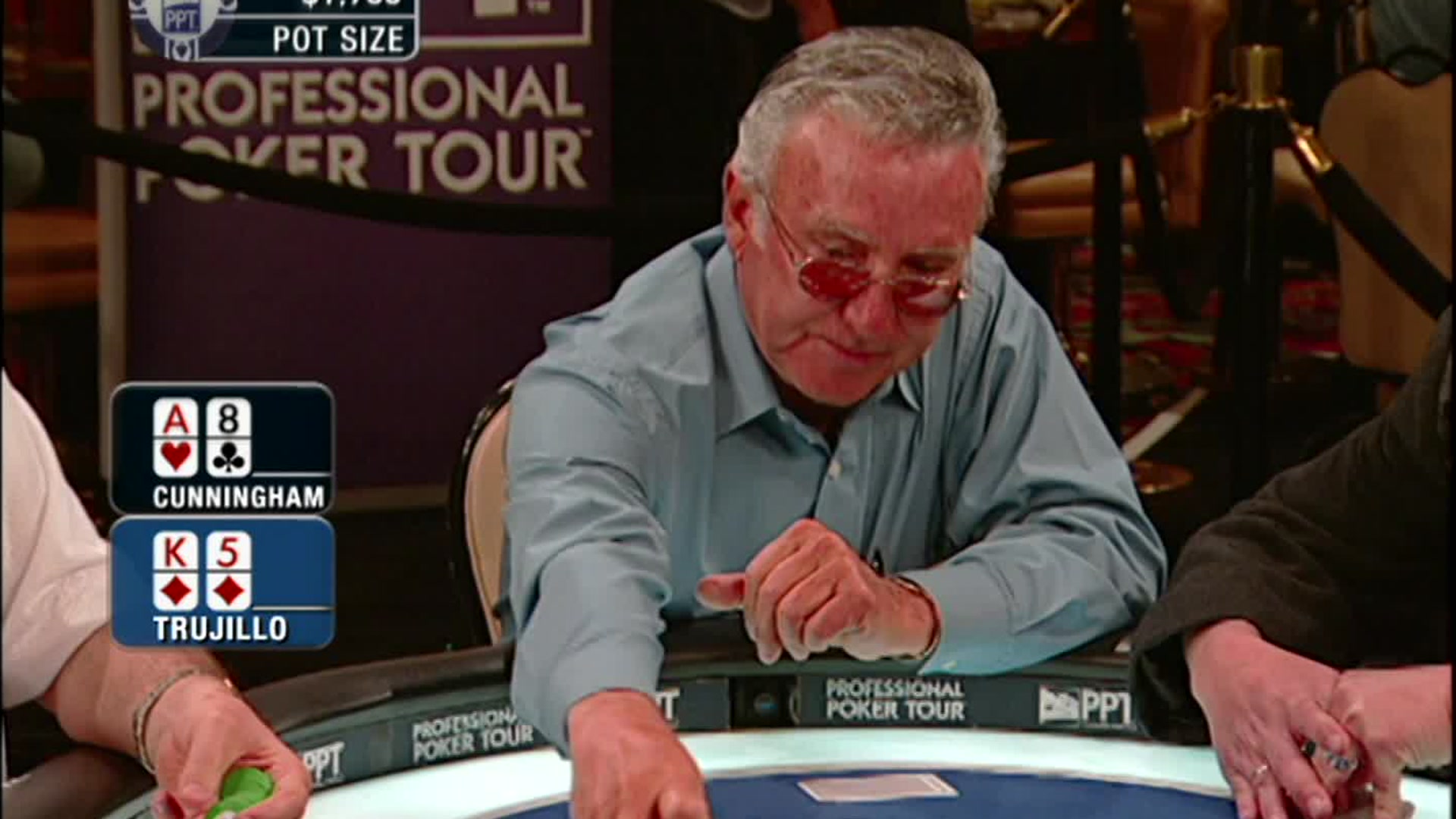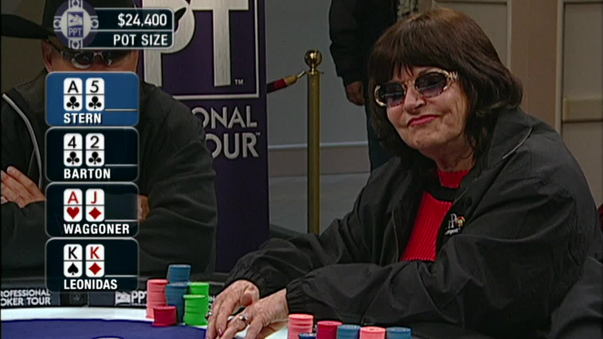 Third quarter PPT action from the Mirage kicks off and everyone is feeling the heat. Captain Tom Franklin lets the chips (and the barbs) fly as he tries to plant his flag and take ownership of the star-studded spotlight table.