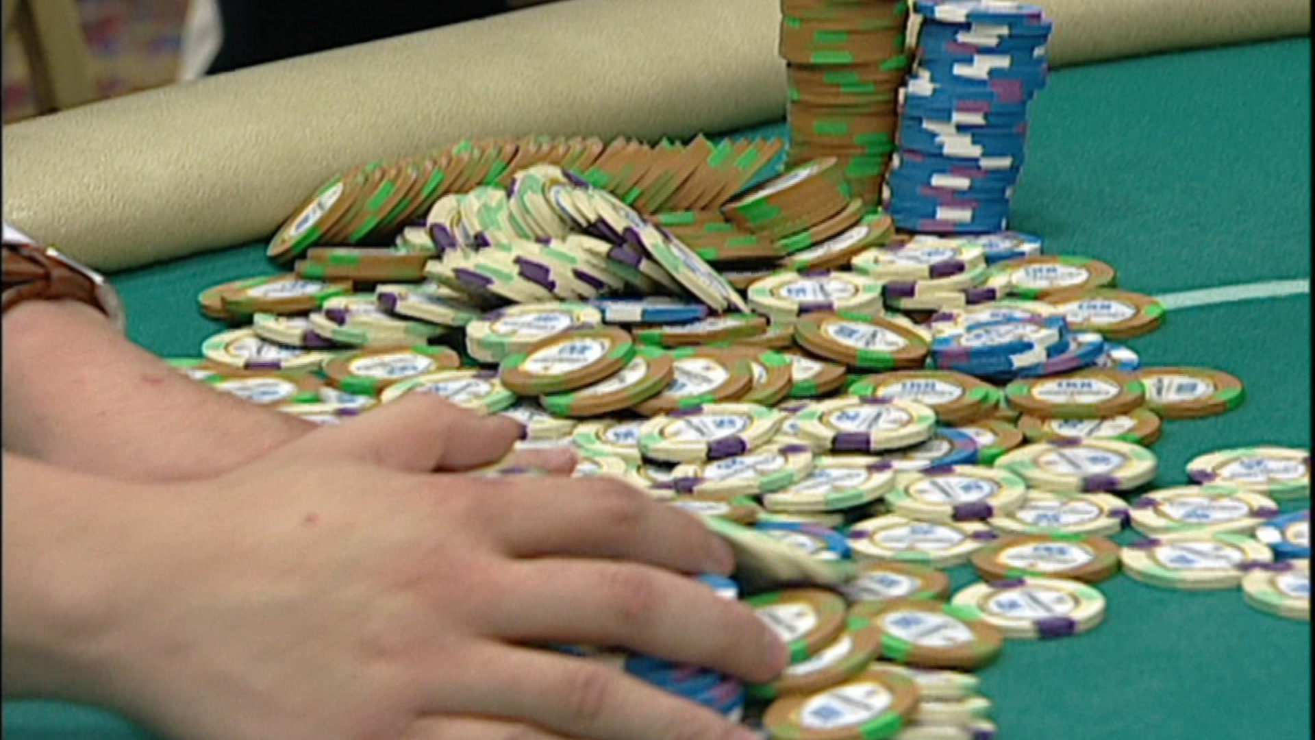 More than 230 players started this tournament on this stop of the Professional Poker Tour at Bellagio. It's now down to around 30 players, and third quarter action is all about survival.