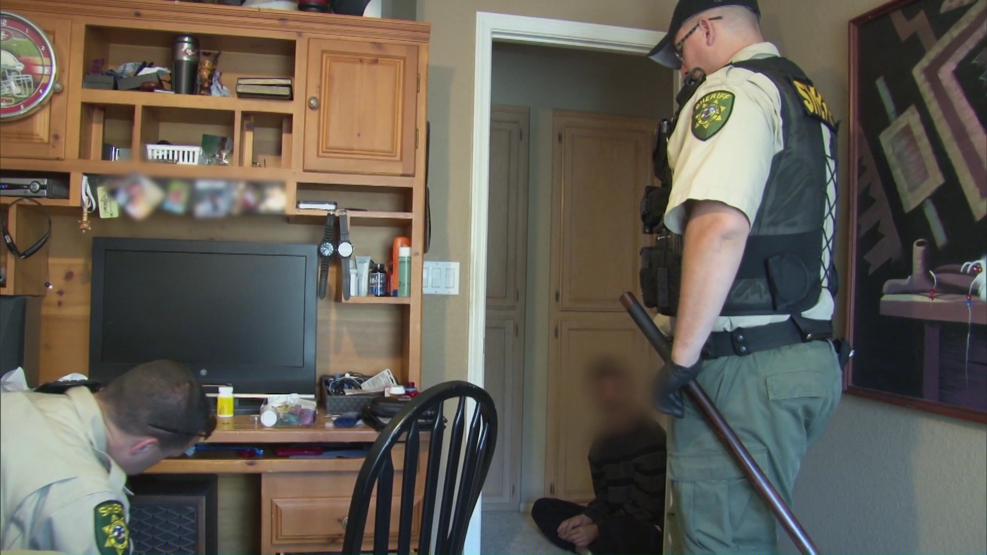 A deputy follows two probationers into a known drug house.