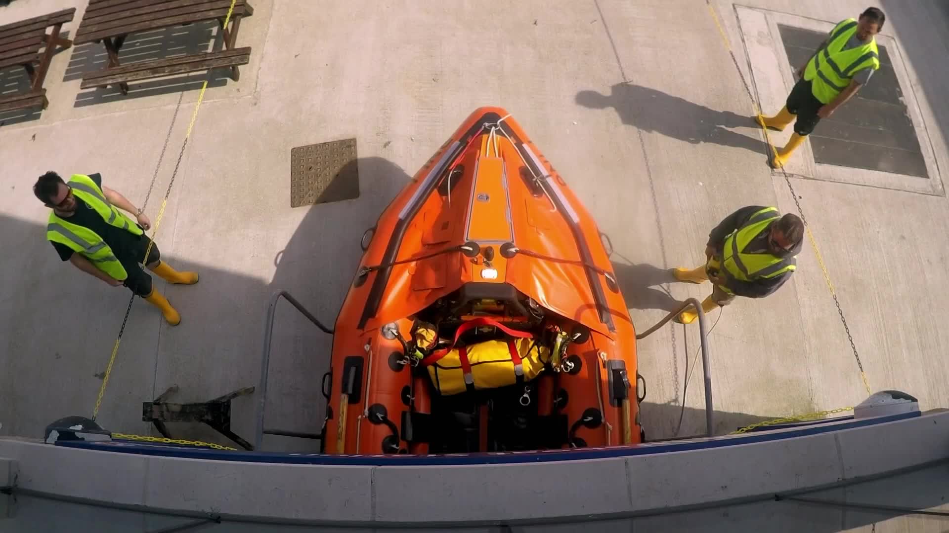 In Lyme Regis, the crew face a frantic search for three fishermen whose boat has capsized.