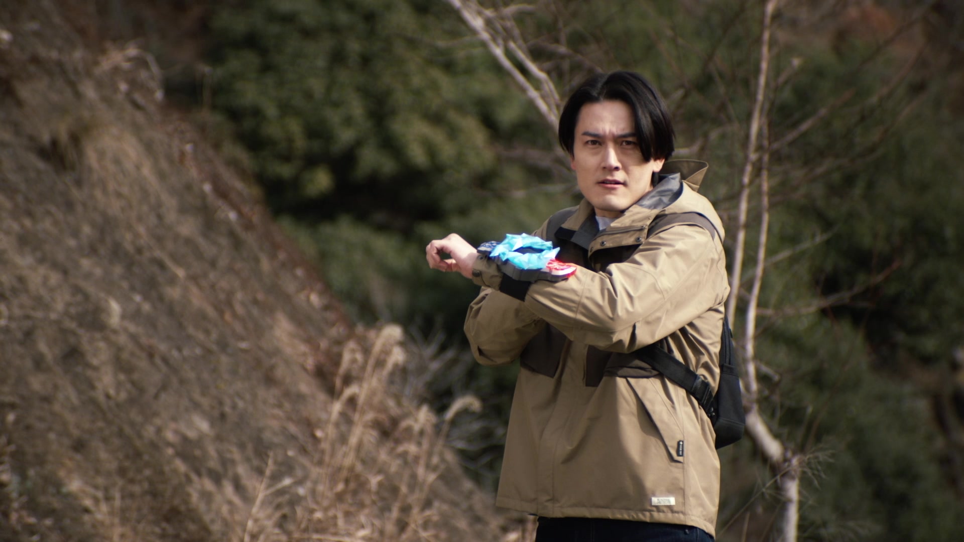 Gento feels mixed emotions seeing the kaiju Demaaga trying to protect its child. Suddenly, the Blazar Brace appears on Gento's left arm.