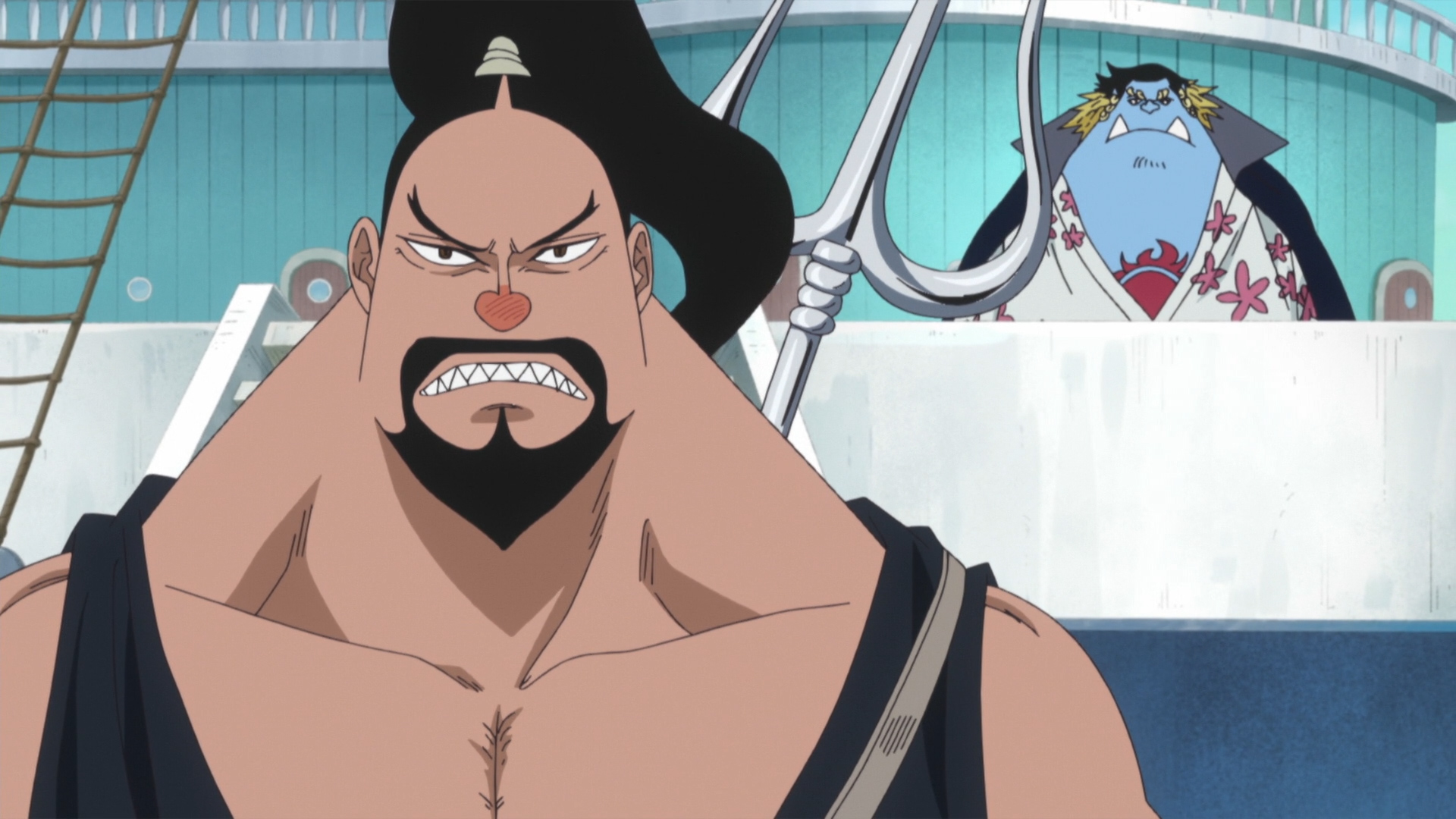 Tensions run high when a slave-owning Celestial Dragon washes up on Fish-Man Island. His former captives cry for out for blood, but Queen Otohime sees it as a chance to mend fences between the gilled and non-gilled!