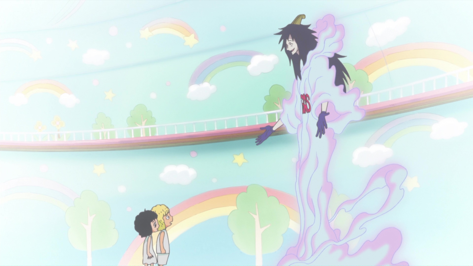 It's Zoro vs. Monet in a duel to the death - or is it? Tashigi comes to lend a hand, and she'll need to bring her full might to compensate for Zoro's weakness! Meanwhile, Mocha is running out of options for keeping the candy away from the children.