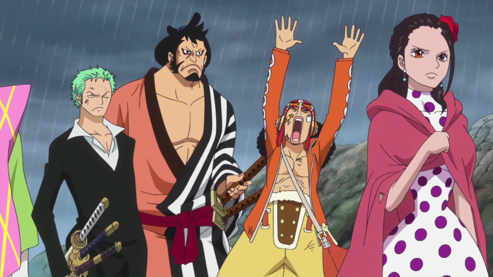 The Birdcage draws tighter and tighter around Dressrosa, threatening to destroy all life on the island kingdom! Meanwhile, Doflamingo stands down Luffy for a final confrontation, but a surprising twist shocks everyone on the top of the Royal Palace!